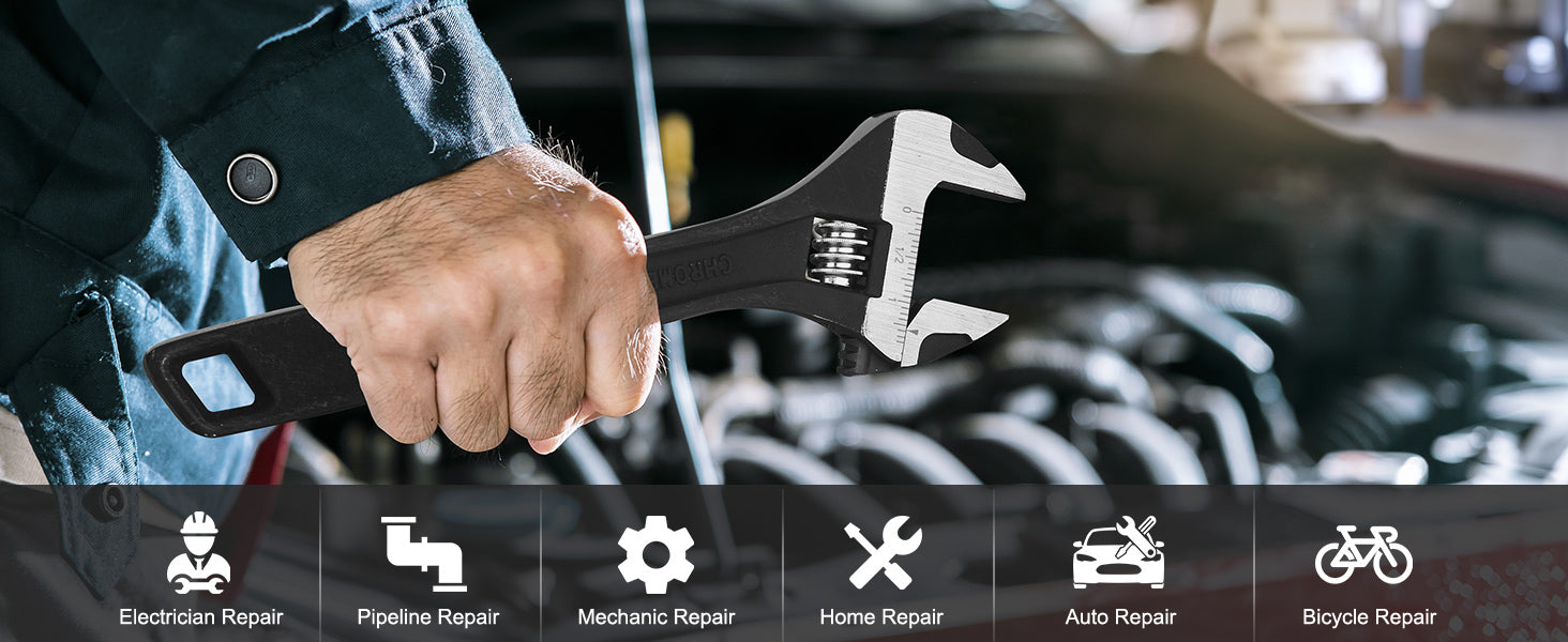 - Durability& Longevity: The materials of wrench determines their durability. Small adjustable wrench is made of premium Chrome Vanadium Steel with heat-treatment and drop-forged construction for durability and toughness. Corrosion-resistant black oxide finish prolongs its life.