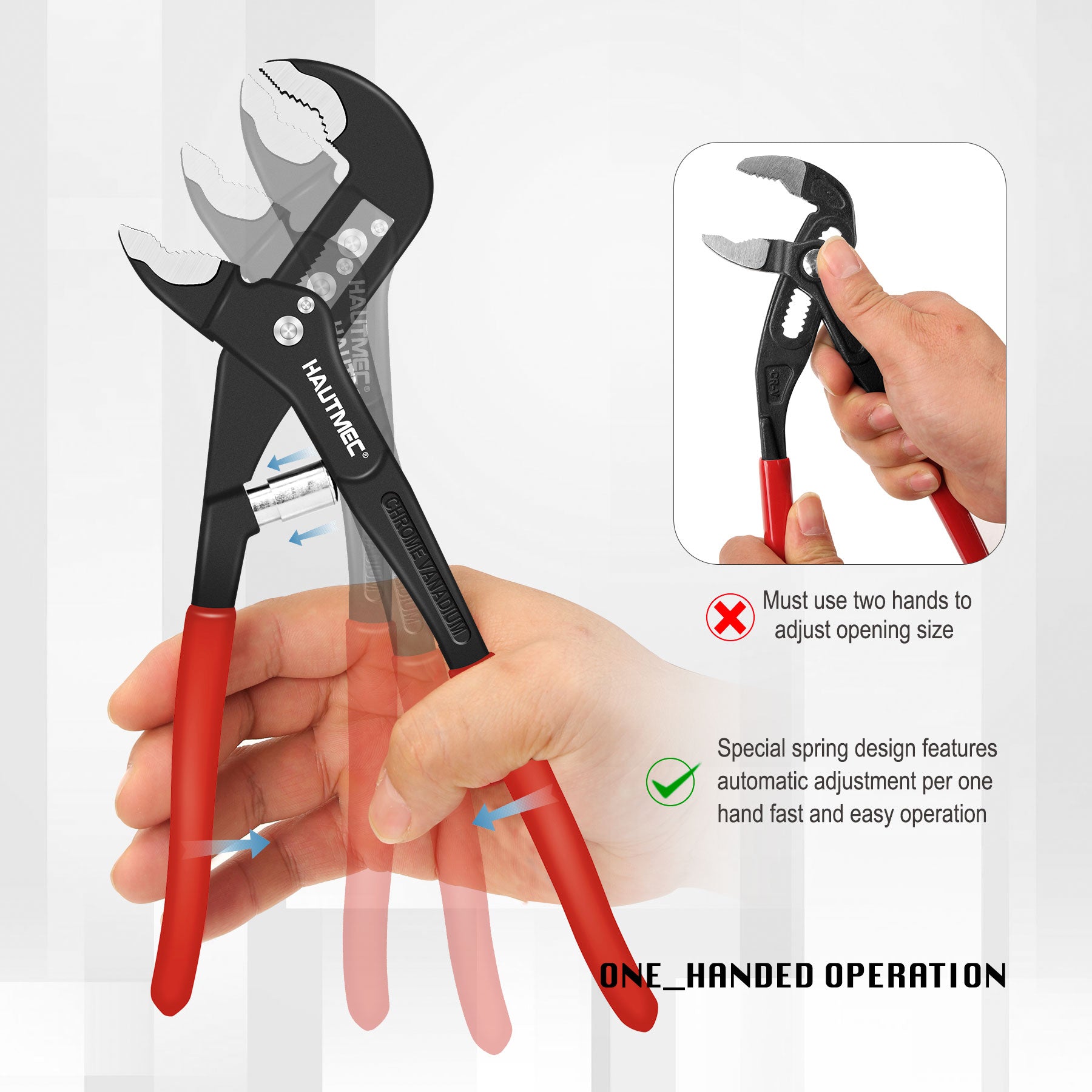 - Easy to use with one hand: The self-adjusting size function, making use even easier, this self-locking feature helps the pliers maintain contact with pipes and nust without slipping or excessive effort