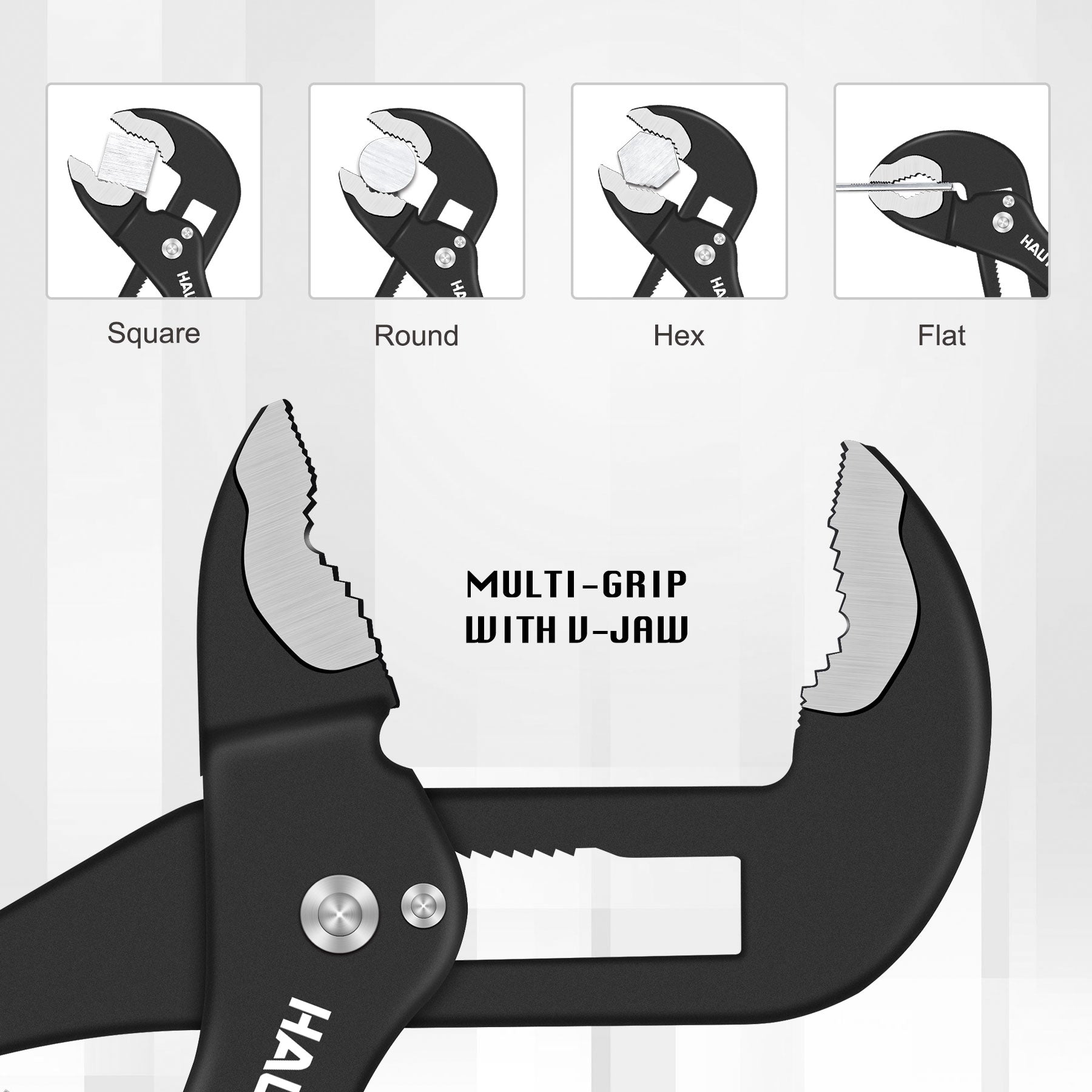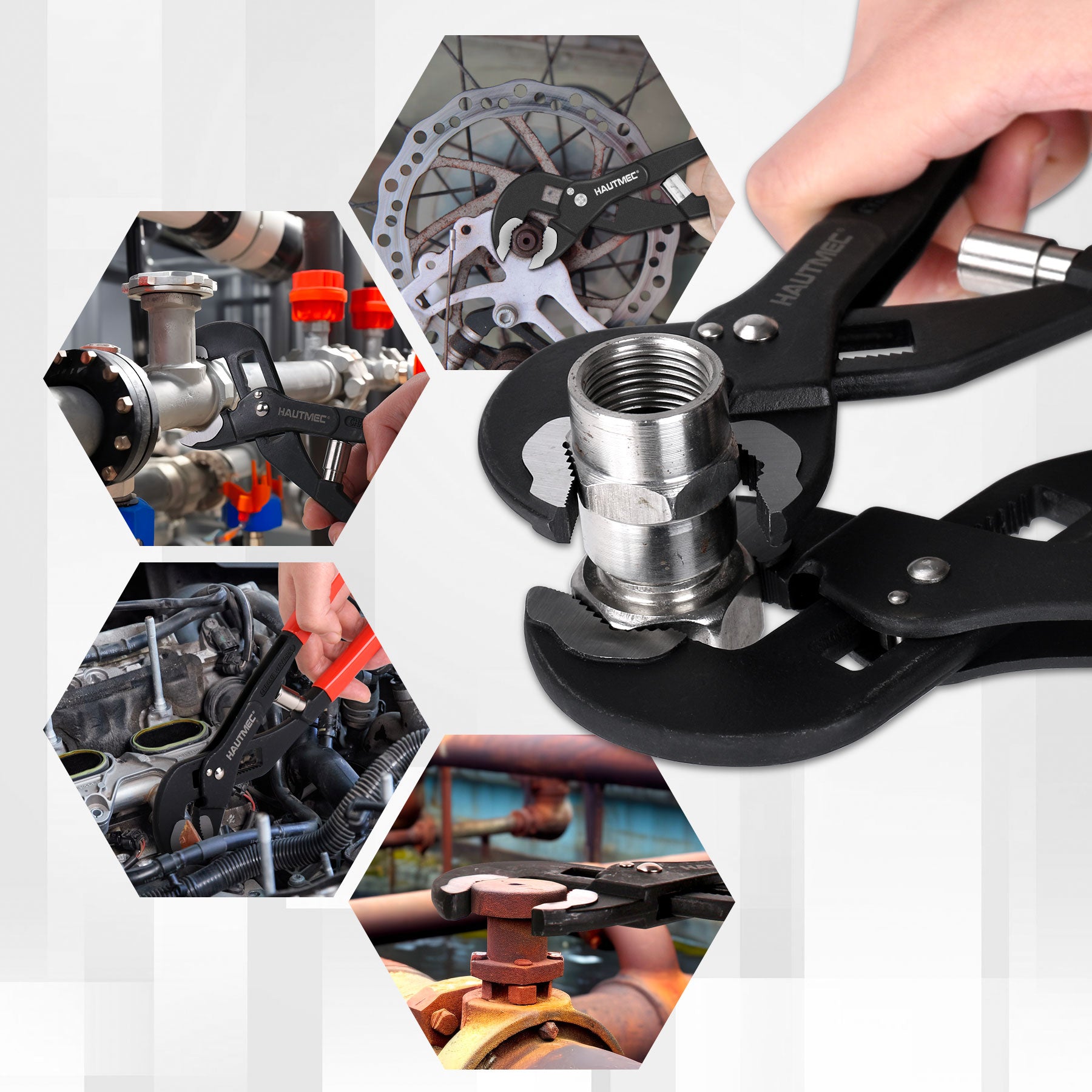 - Suitable for left and right handed people, and ideal for frequent changeover to work pieces of different sizes; For any home maintenance or on-the-job toolbox; Perfect for plumbers and DIY homeowners: gripping, pulling, tightening & loosening nuts, bolts, pipe & fittings