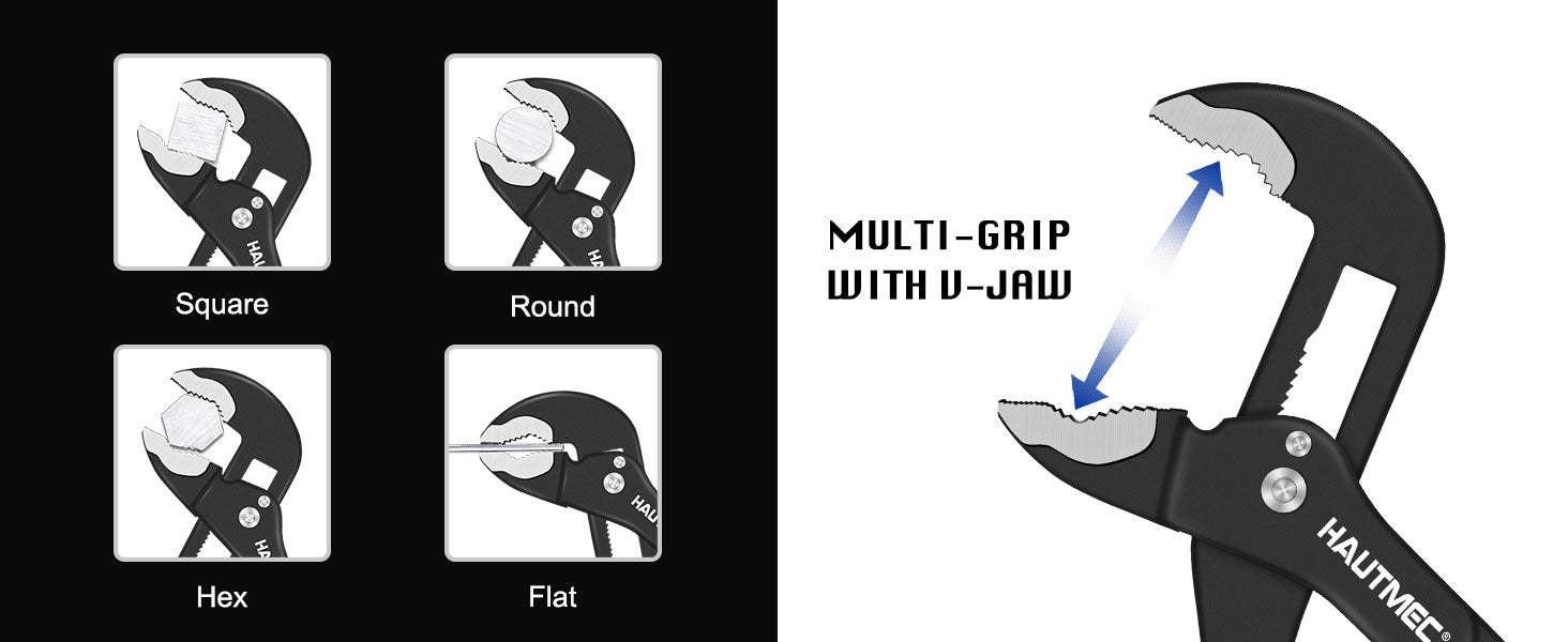 - Versatile: V-JAWS for more points of contact on round stock and tubing, easy to grip flat, round, or irregular shaped nuts, washers, and bolts; Compact and well balance design with ability to reach inside a small space and get wide and strong grip