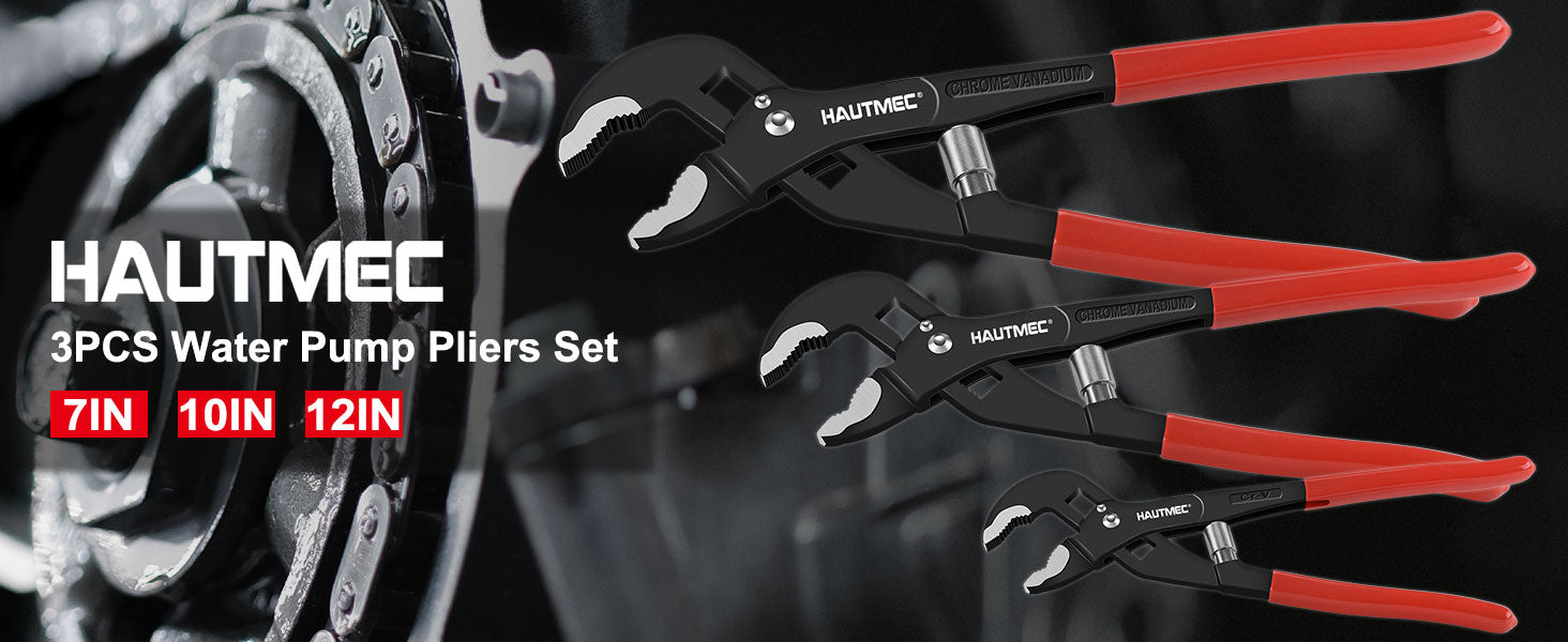 HAUTMEC 3PCS Tongue and Groove Joint Pliers Tool Set, Auto-Adjusting Water Pump Pliers Set with Storage Tool Bag, Comfort Grips, 7 10 12Inch Plier Rust-Proof CRV Steel Construction for Plumbing HT0324-PL