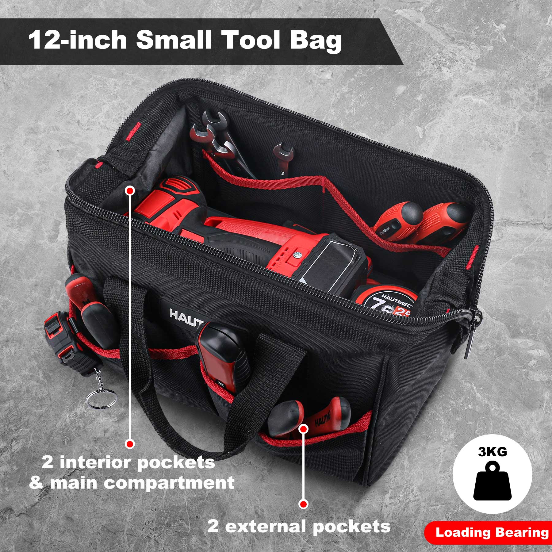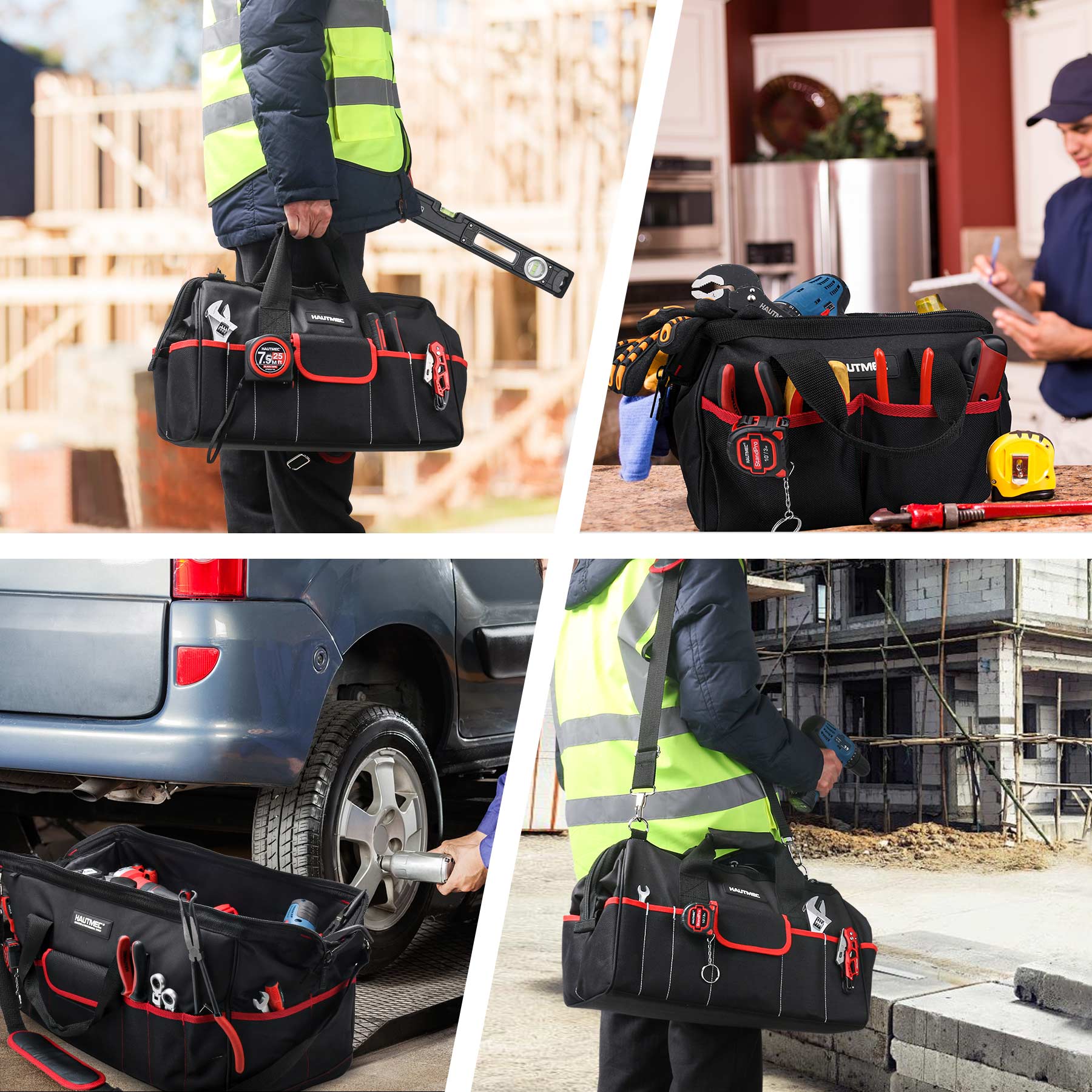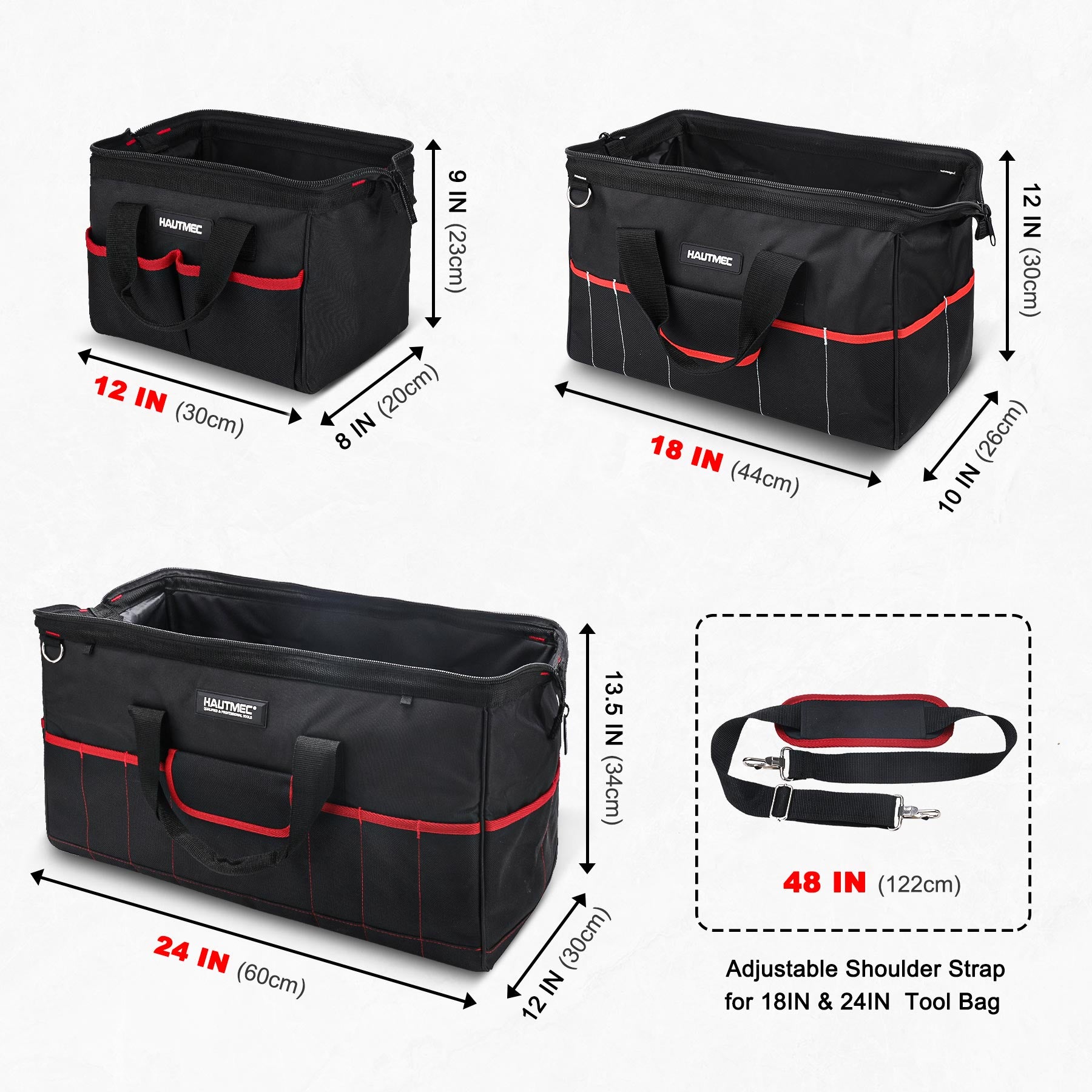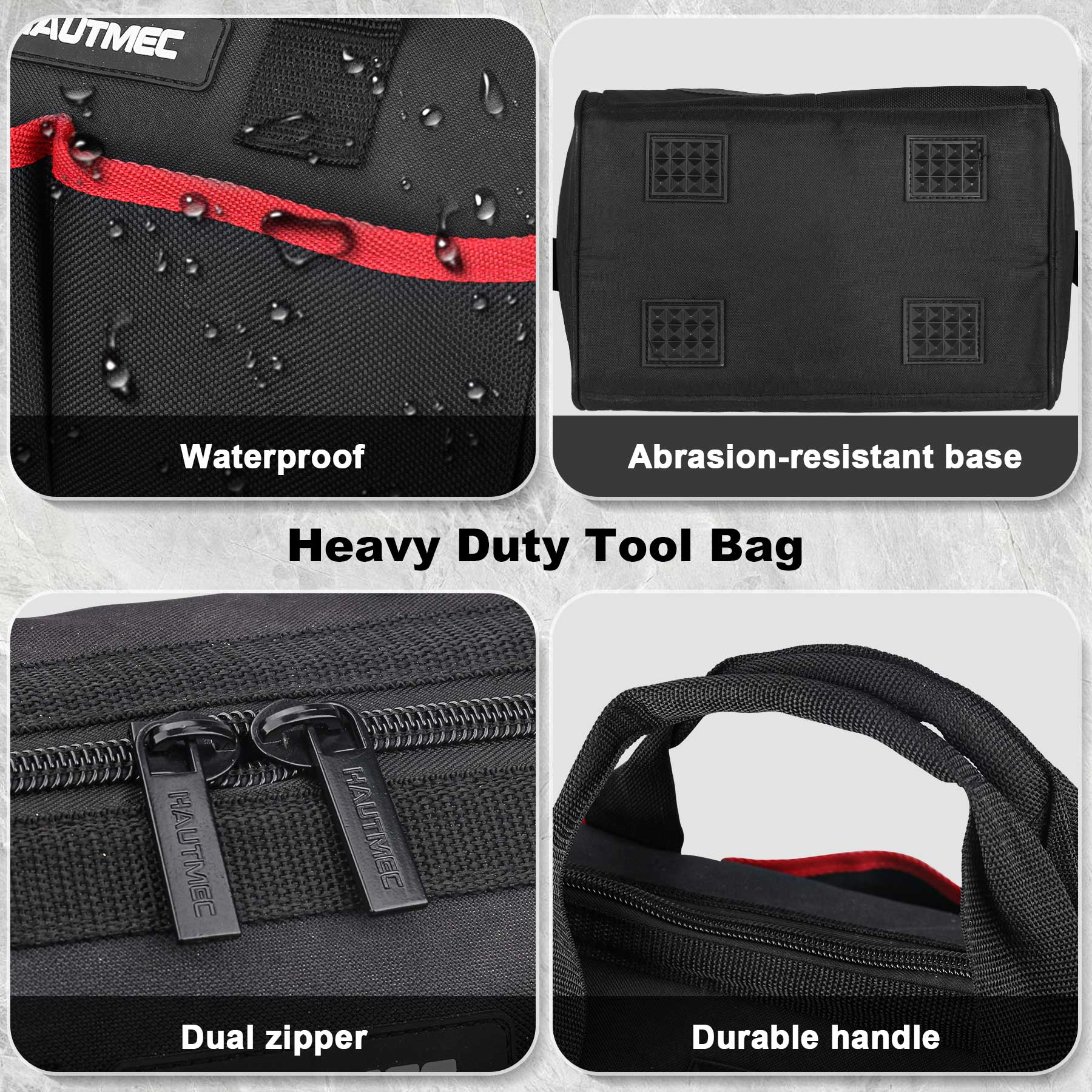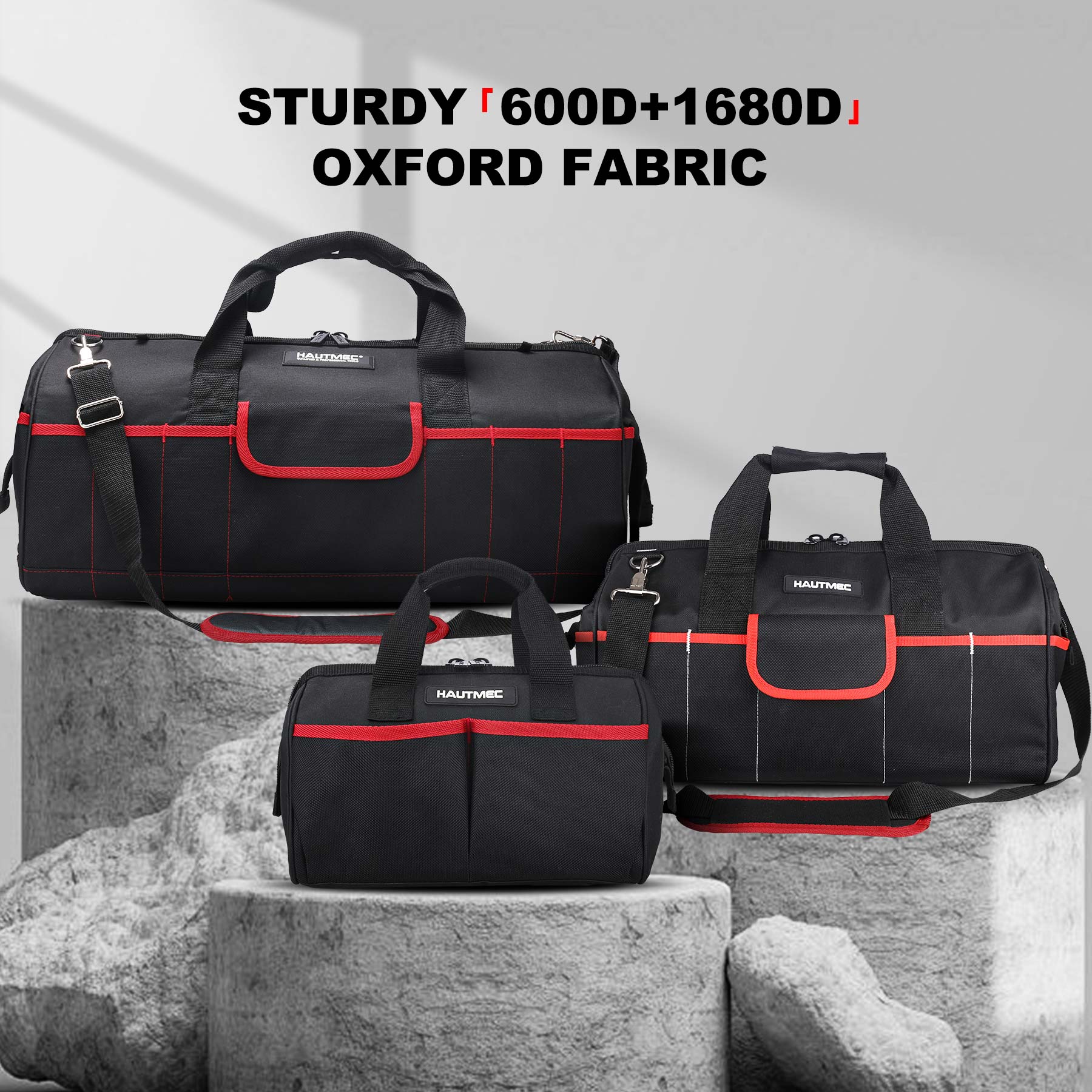 HAUTMEC 3 Pack Portable Tool Bag Set, Heavy Duty 1680D Wide Mouth Tool Box Organizer, Wear-Resistant Utility Bag with Non-Slip Base and Double Zipper Design, HT0297