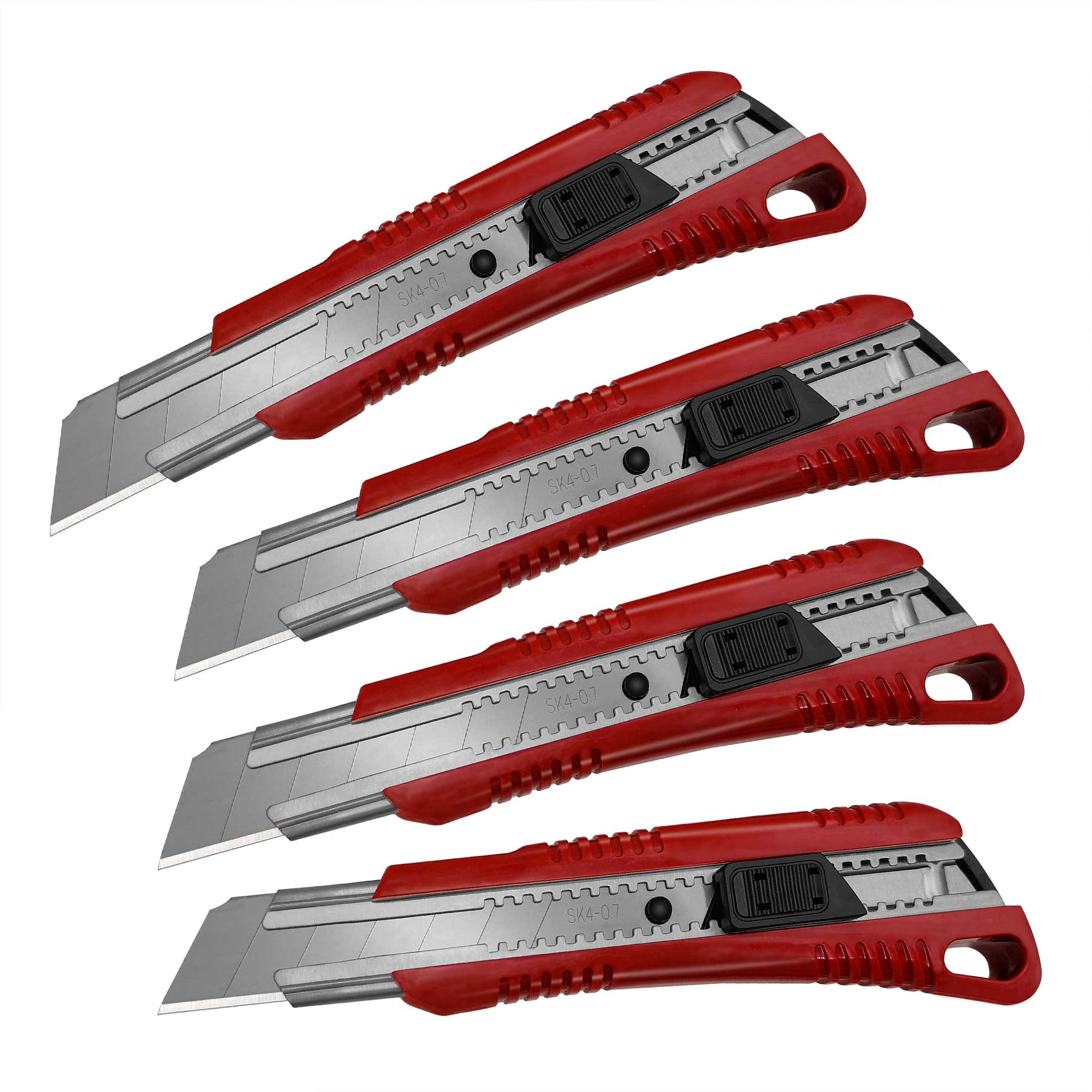 HAUTMEC 4PCS 25mm Extra Heavy-Duty SK4 Utility Knife, 3pcs blade Snap-off Retractable Box Cutter, Auto-lock Mechanism, Blade Storage Design HT0080-4PC