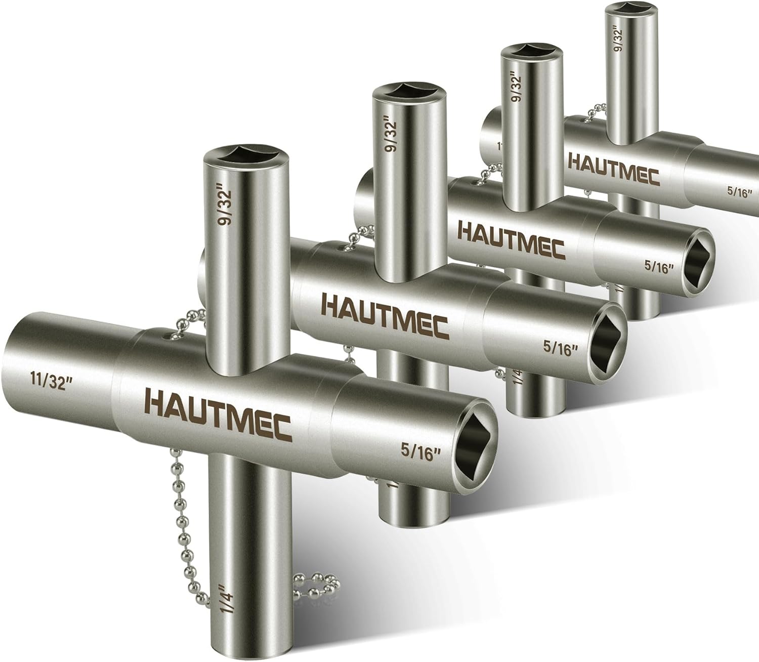 HAUTMEC 4pcs 4 Way Sillcock Water Key Faucet Valve Tool Spigot Key 1/4", 9/32", 5/16", 11/32" PL0028-4