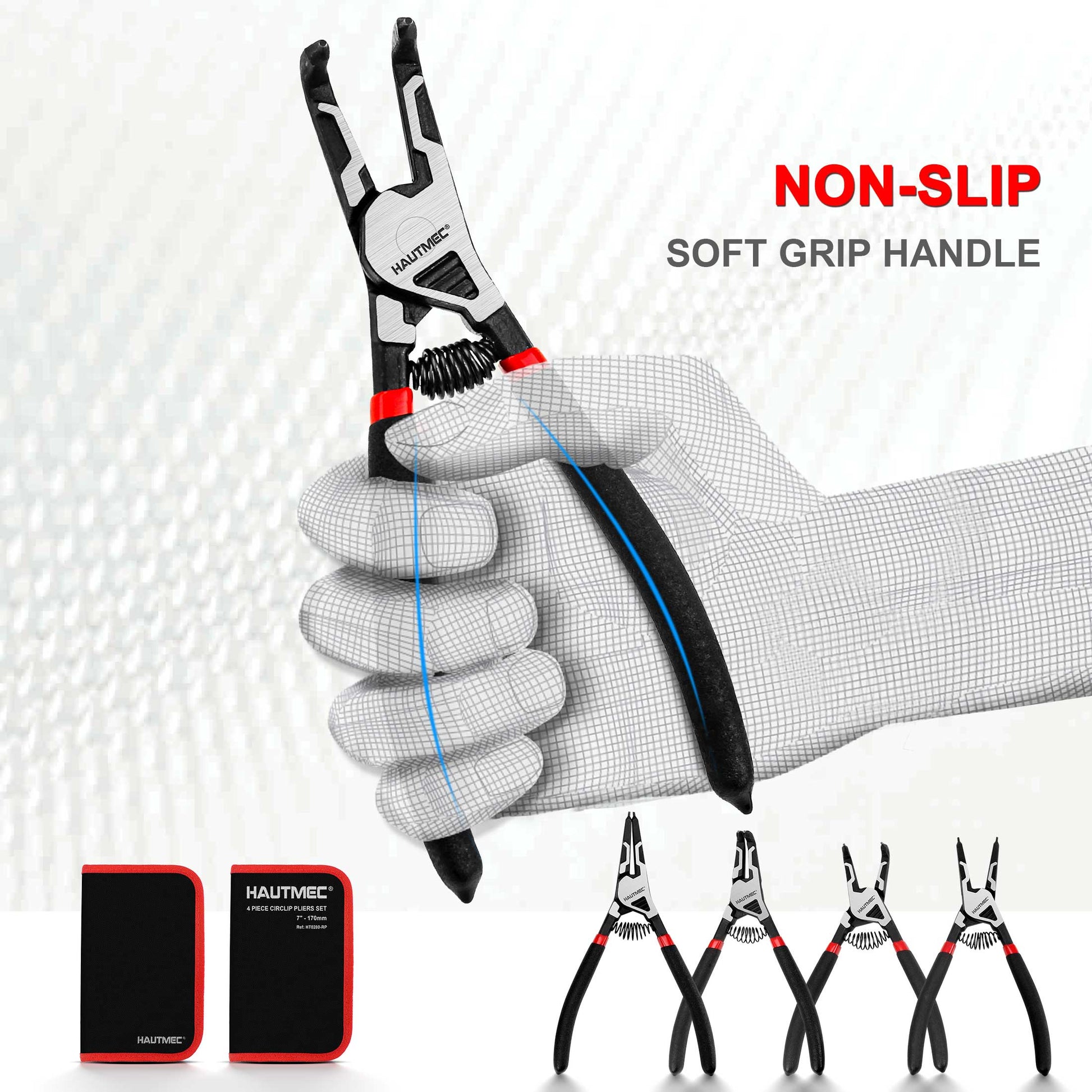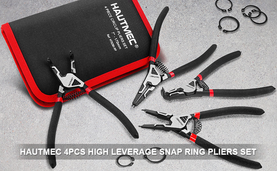 HAUTMEC 4PCS High Leverage Snap Ring Pliers Set,7 inches Internal/External Heavy Duty Circlip Pliers HT0280