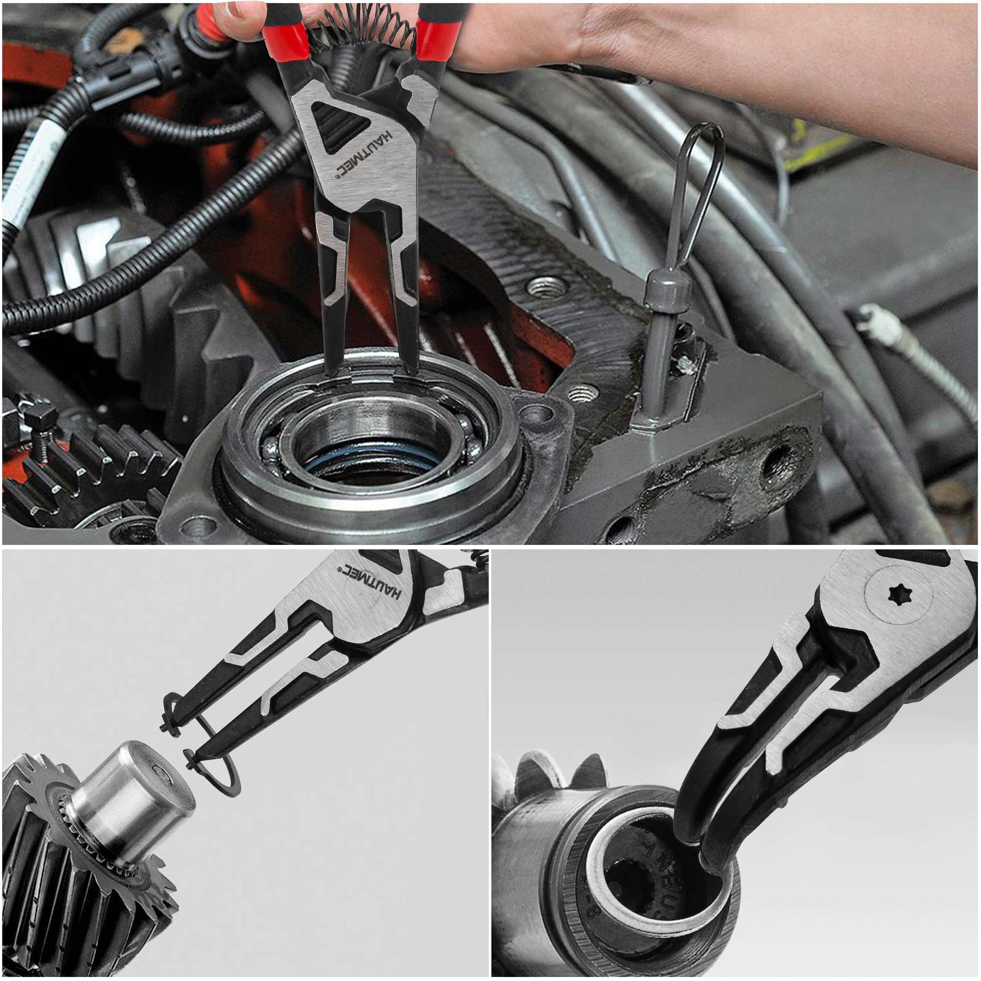 - Made in premium forged chrome vanadium steel with heat treatment and oil-hardened,to ensure reliable,long-lasting strength;Precision machine polished surface and blackend treatment make snap ring pliers anti-rust,anti-corrosion