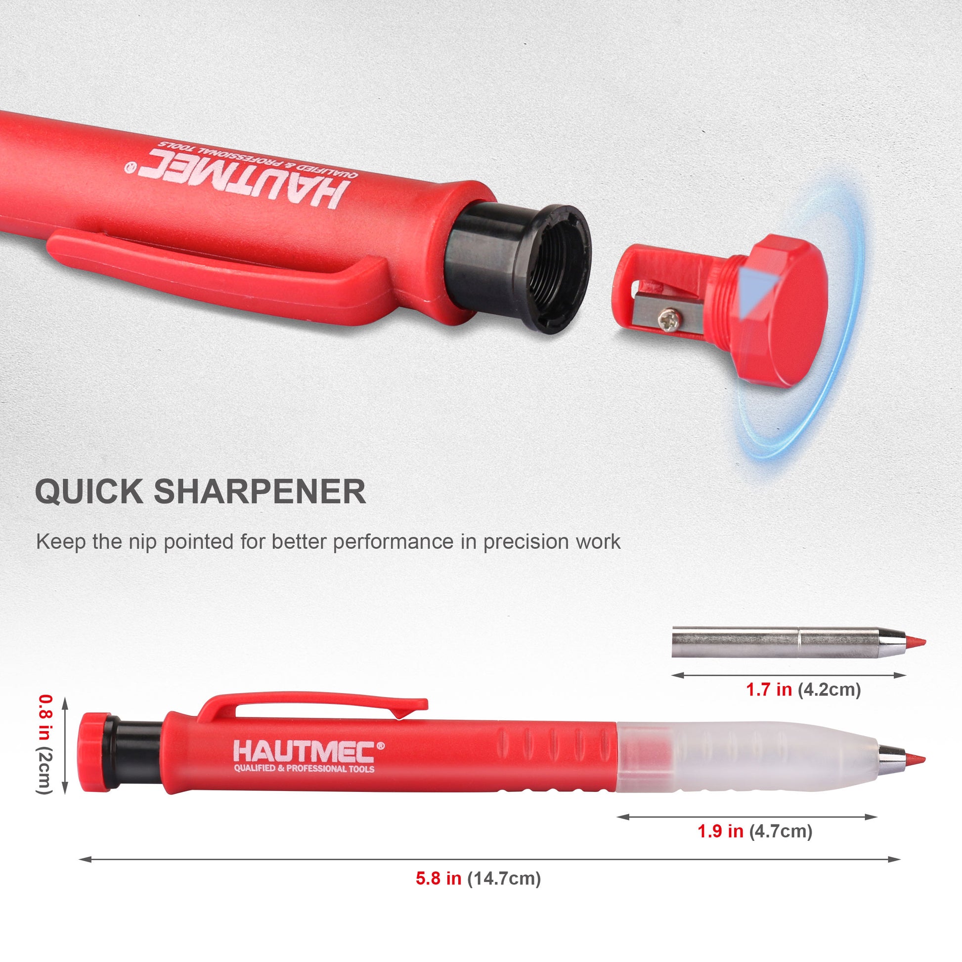- Convenient Built-In Sharpener: The integrated sharpener at the pencil’s top keeps the lead sharp and ready for precise marking, eliminating the hassle of carrying a separate sharpener