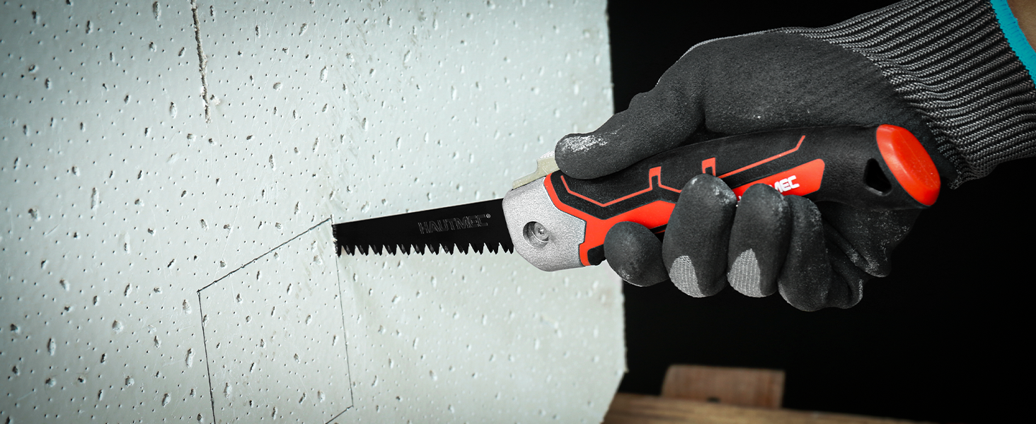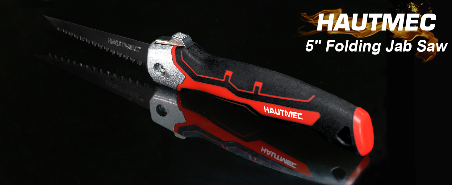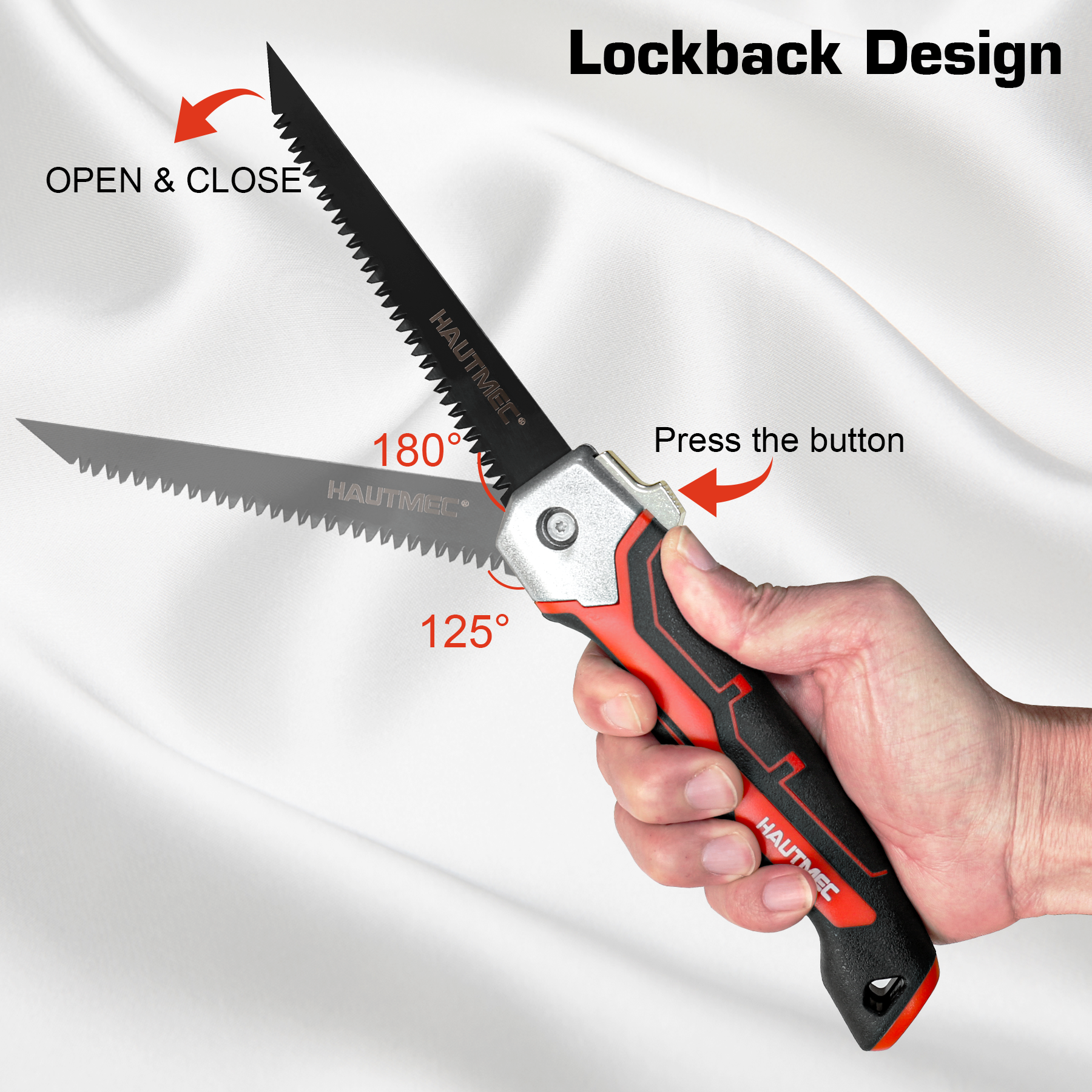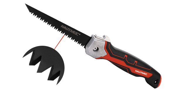 HAUTMEC 5" Folding Drywall Saw/Jab Saw/Keyhole Saw with Carbon Steel Blade, Sheetrock Saw with 7TPI Triple Sharpen Teeth, Compact Design with Holster, for Drywall, Wallboard, Plywood, PVC, HT0415