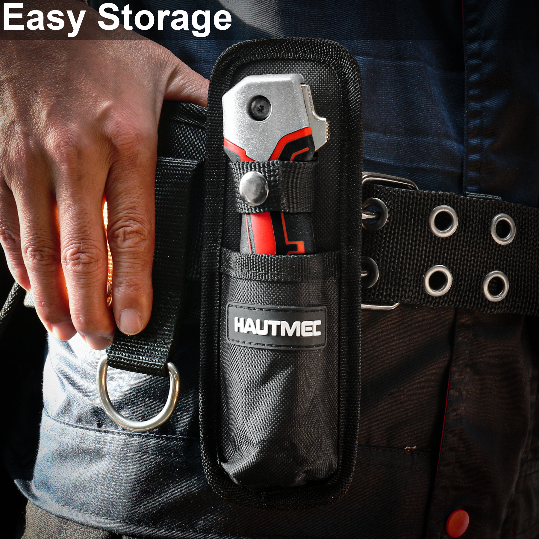 - Foldable & Lockback Design: This blade folds out and locks at 125 degree and fully opens at 180 degrees when you need to do your work. When you’re finished and want to keep it in a safe position, fold it into the handle, which can prevent the blade from puncturing tool pouches and bags. This compact foldable design for using in confined spaces.