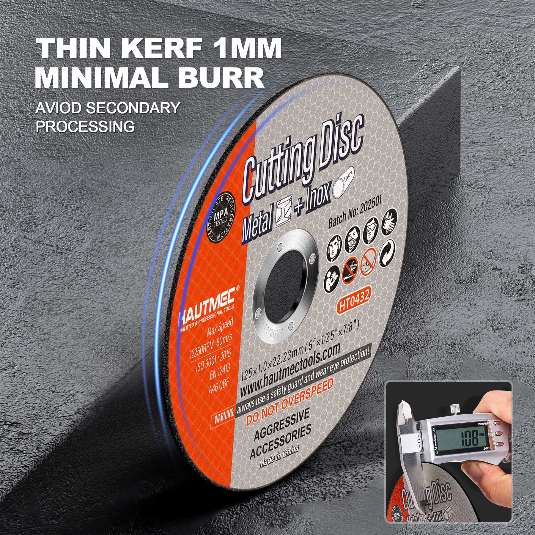 HAUTMEC 5 Inch Cut Off Wheels 20 Pack, 5" x .04" x 7/8" Thin Metal Cutting Discs for Angle Grinder, Expert Grade Cutting Wheel for Steel, Stainless Steel & Metals – HT0432