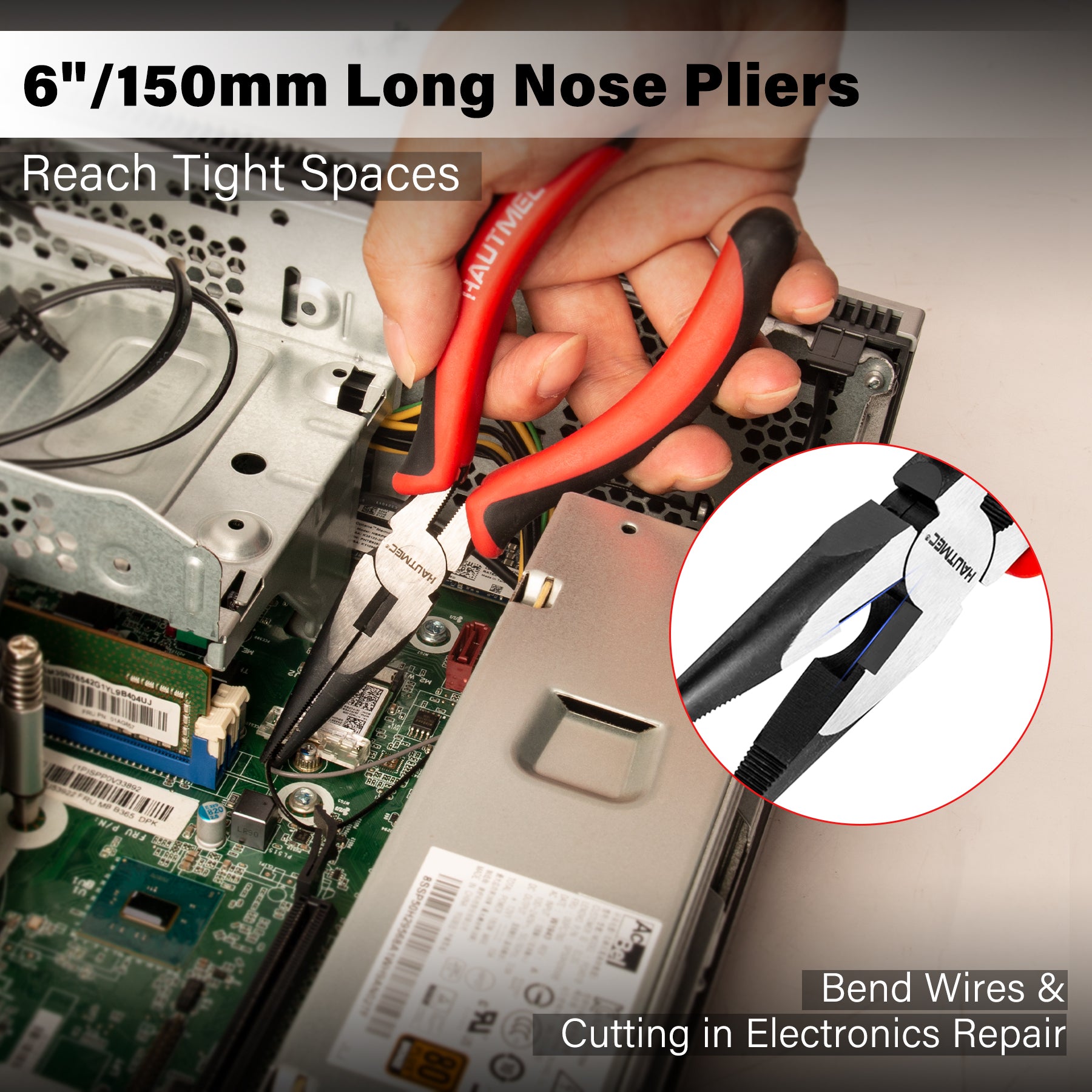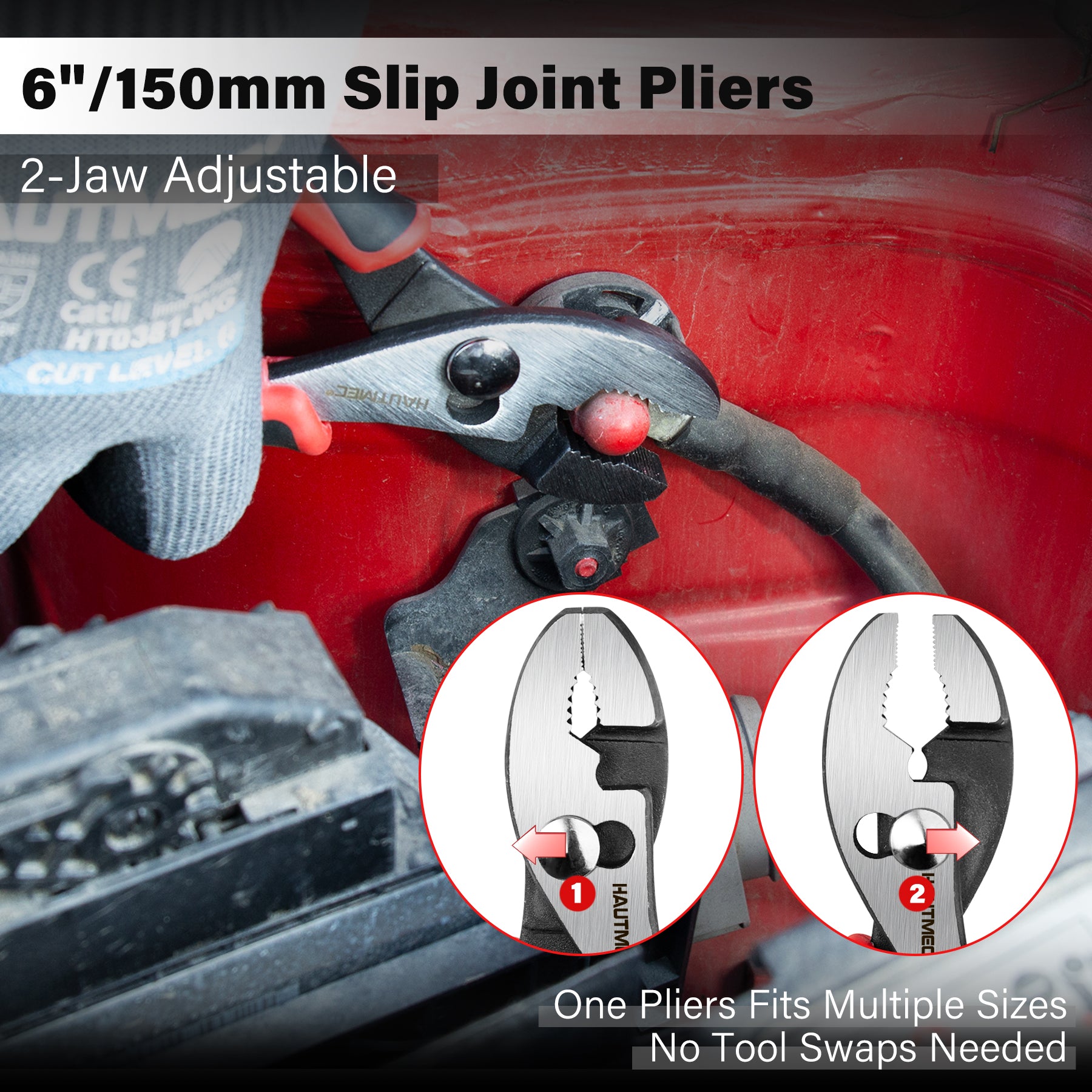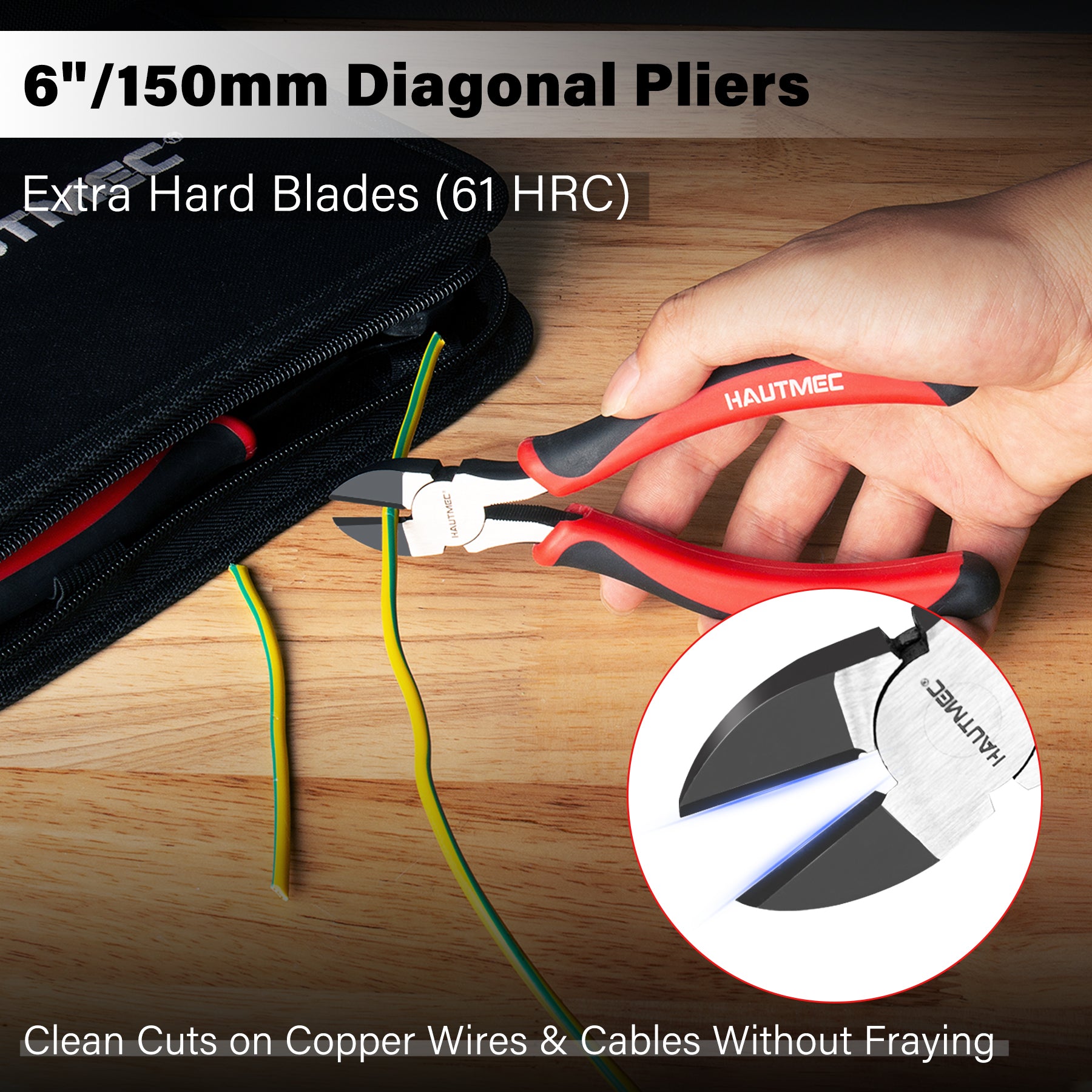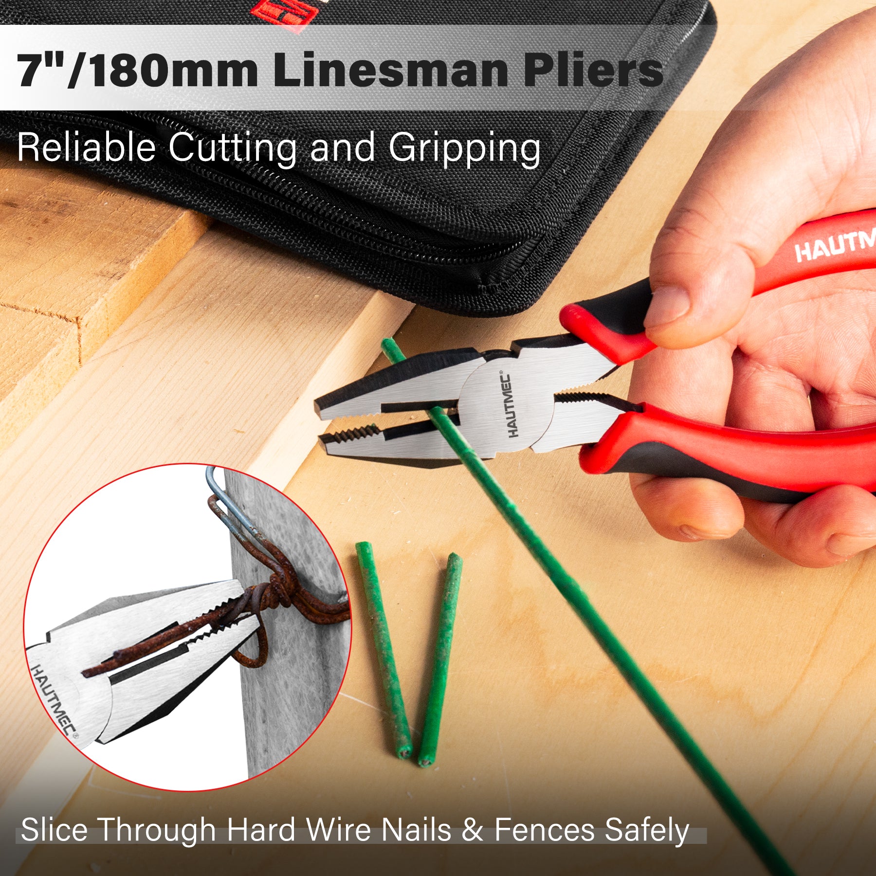 - Versatile Essential Pliers Set – Includes 6" slip-joint (adjustable grip), 6" long nose (precision grip), 6" diagonal (wire cutting), 7" linesman (gripping/cutting), and 8" groove joint (adjustable for pipes/fittings) and a carrying pouch