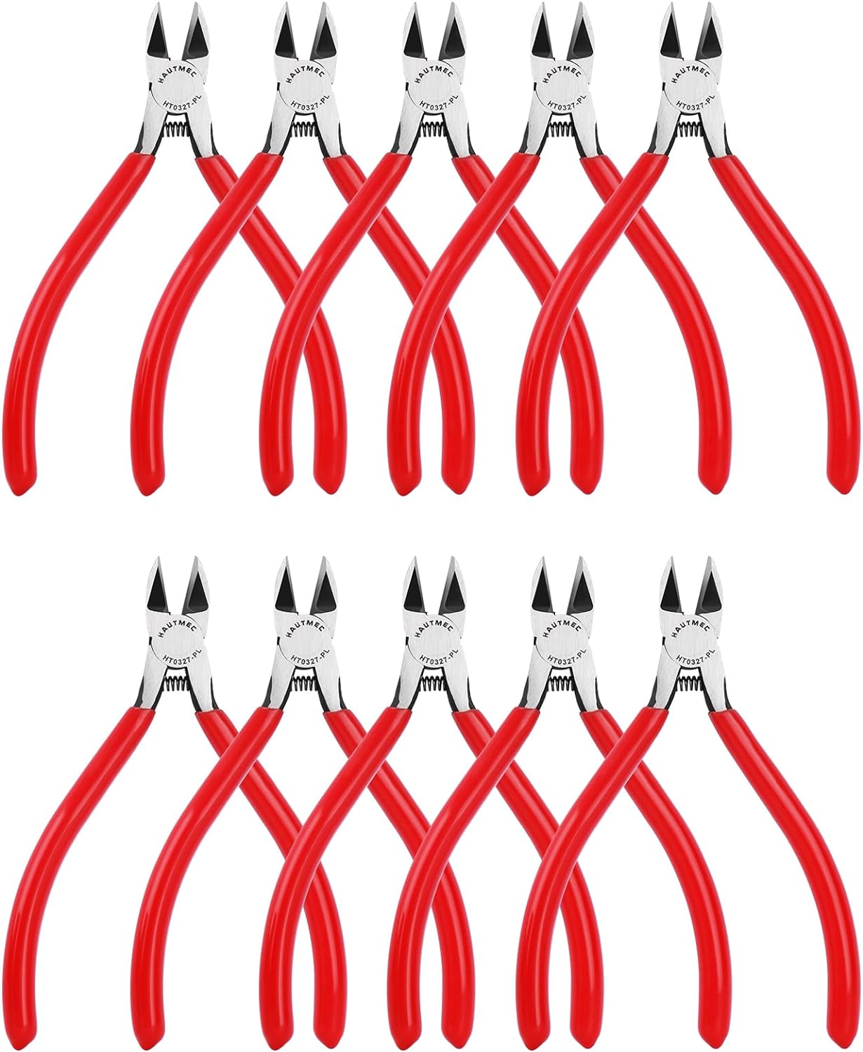 HAUTMEC 5" Precise Small Flush Cutting of Engineer Wire Cutter Plier 10PCS with Location Pin for Fine Shearing, Perfect for Circuit Board Cutting, Electronic Components, HT0327-10PC