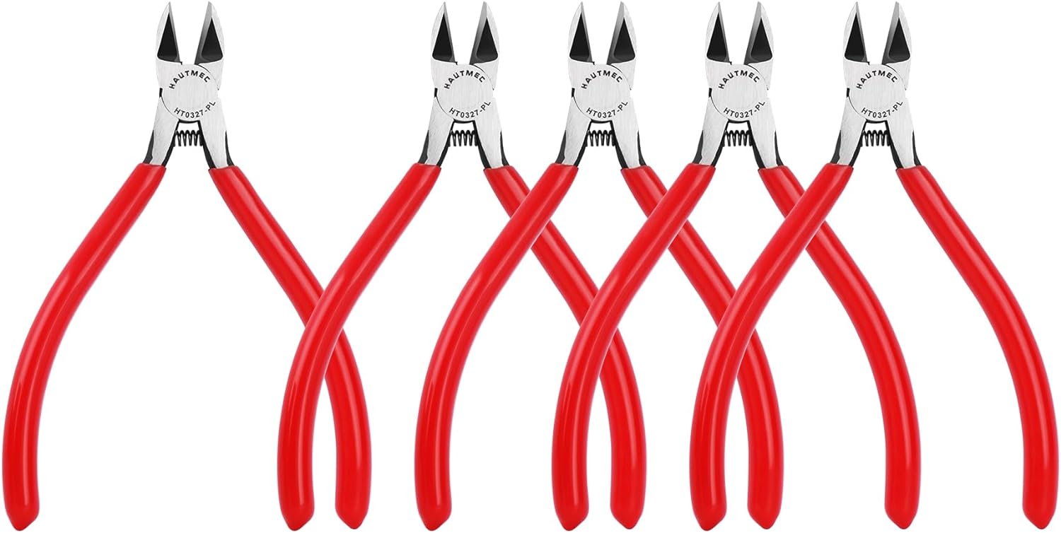 HAUTMEC 5" Precise Small Flush Cutting of Engineer Wire Cutter Plier 5PCS with Location Pin for Fine Shearing, Perfect for Circuit Board Cutting, Electronic Components, HT0327-5PC