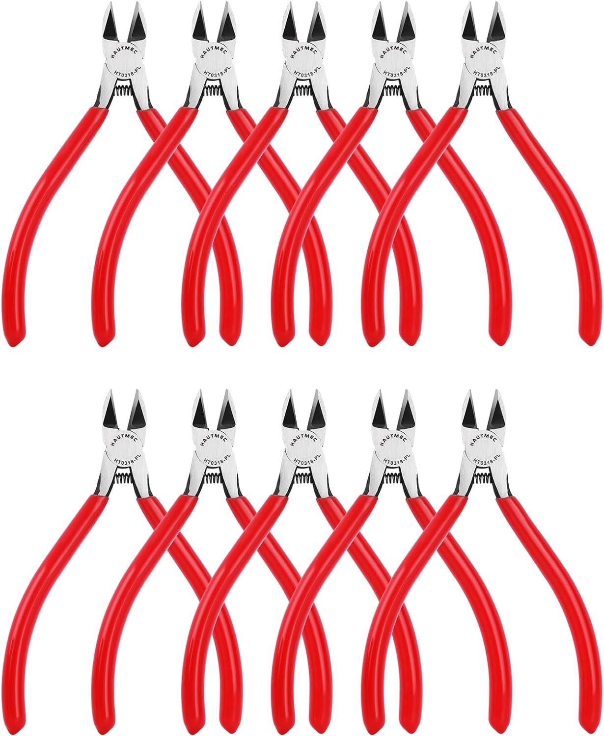 HAUTMEC 6" Flush Cutters Ultra Sharp Flush Cut Pliers 10PCS Small Wire Cutters for Crafting, Spring Loaded and Non-slip Grip Wire Snips for Plastic, Jewelry Marking, Artificial Flowers, HT0318-10PC