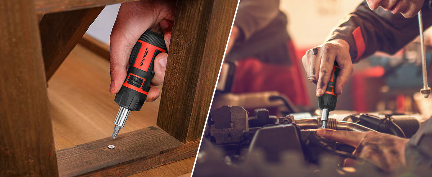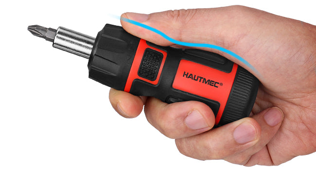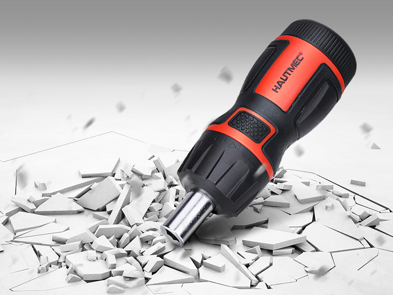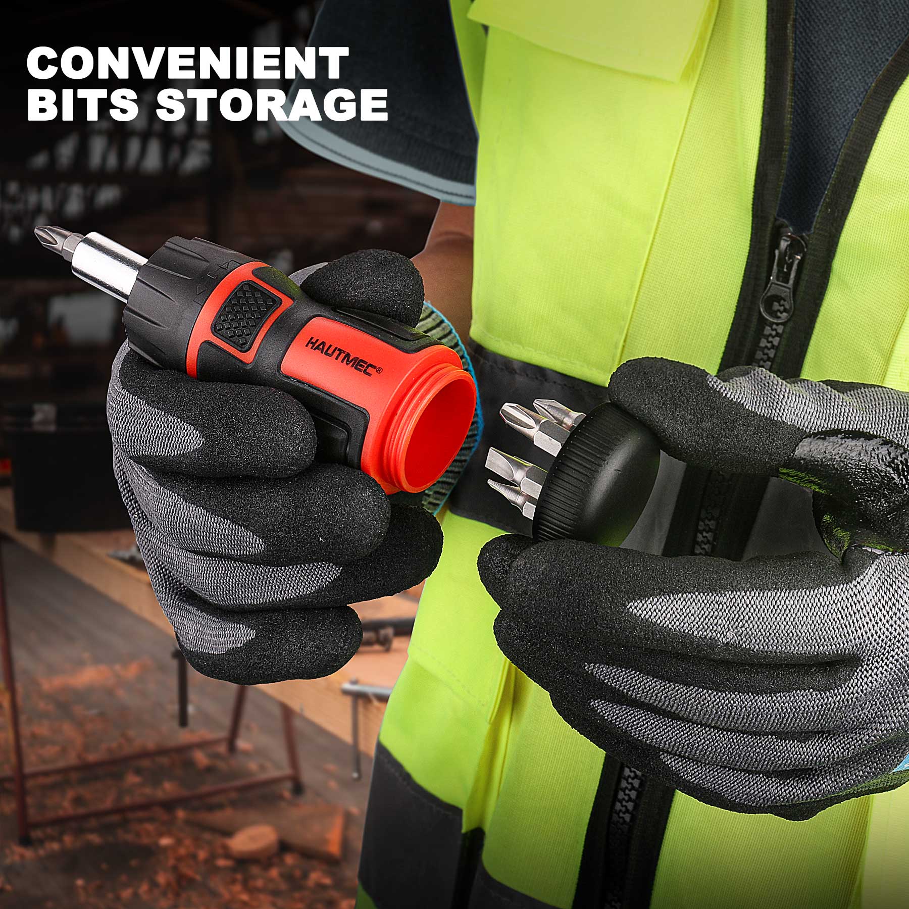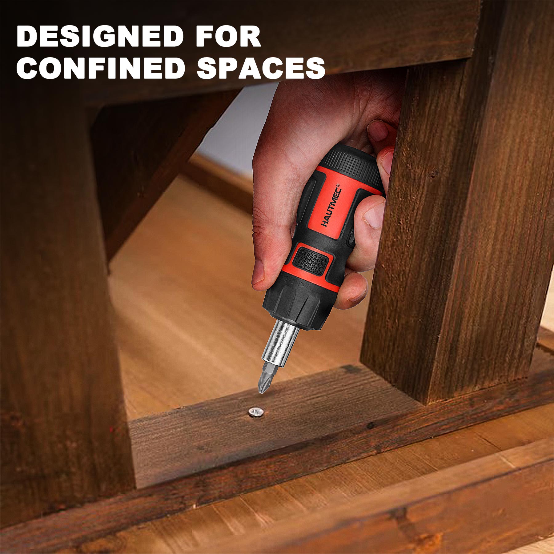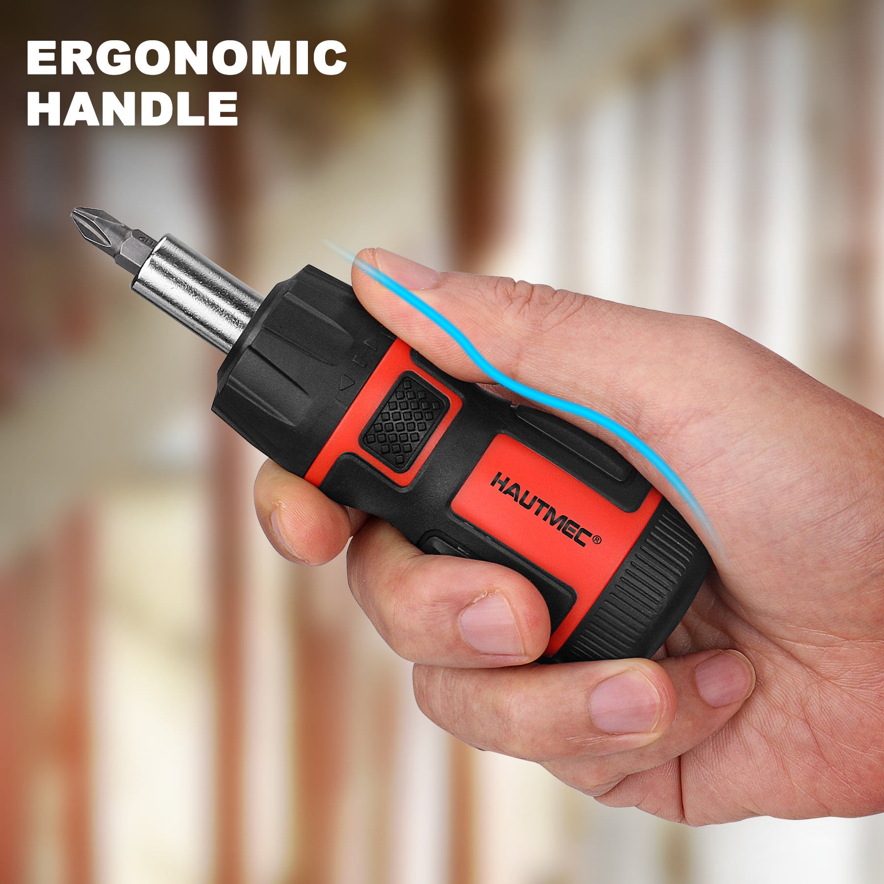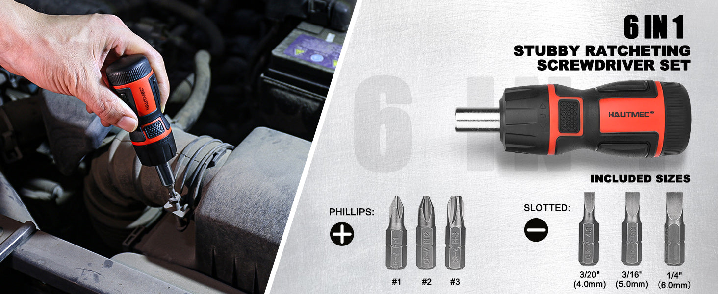 HAUTMEC 6-in-1 Stubby Ratcheting Screwdriver Set, Multi Screwdriver Tool All in One, Ratchet Screwdriver Set with Multi Bit Screw Driver, Chrome Vanadium Steel Shaft, 3PCS Phillips and 3PCS Slotted,HT0385