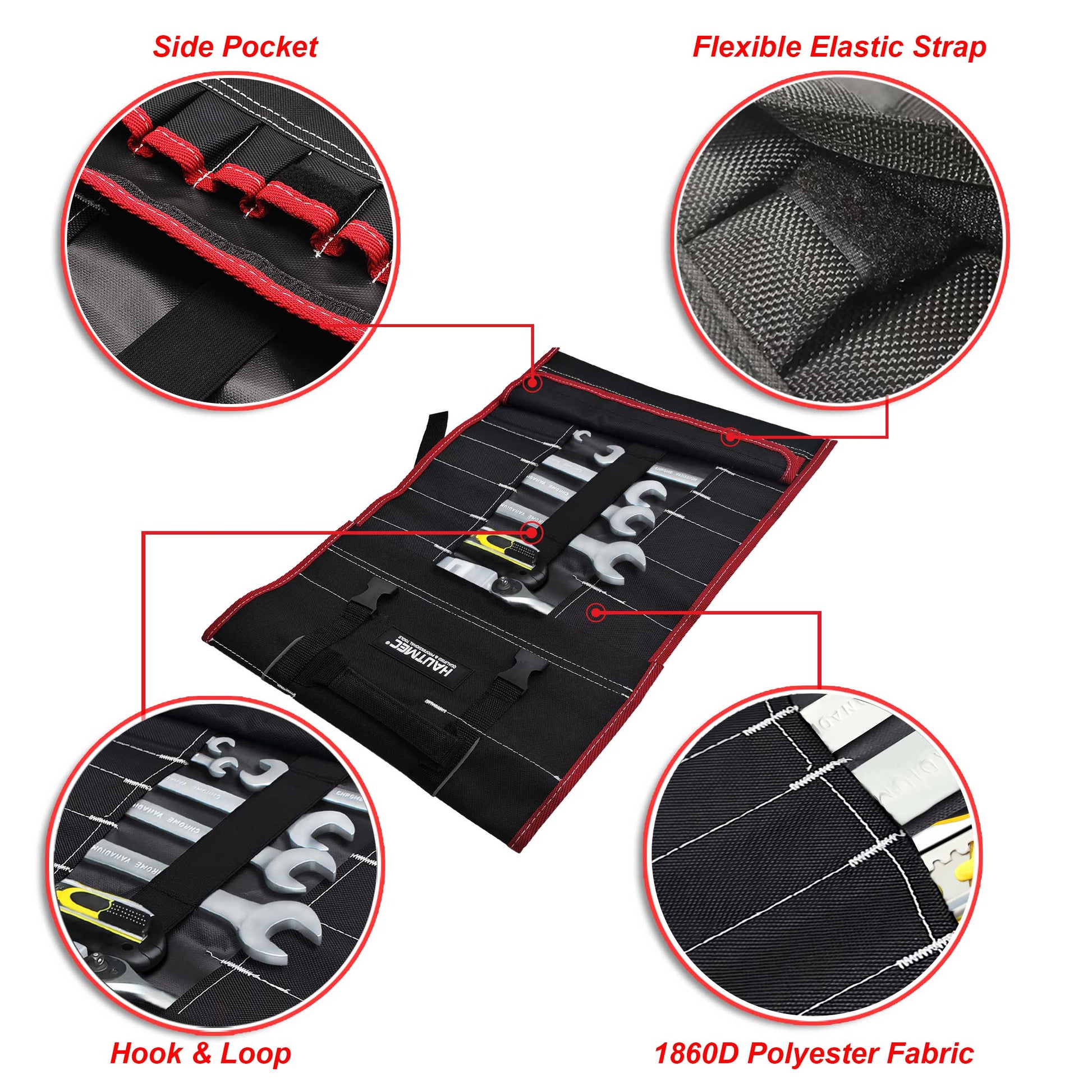 HAUTMEC 600D Tool Roll Bag, 32-Pocket Wrench Organizer, Multi-purpose Tool Roll Up Bag, Large Space Military Tool Bag HT0069-TB