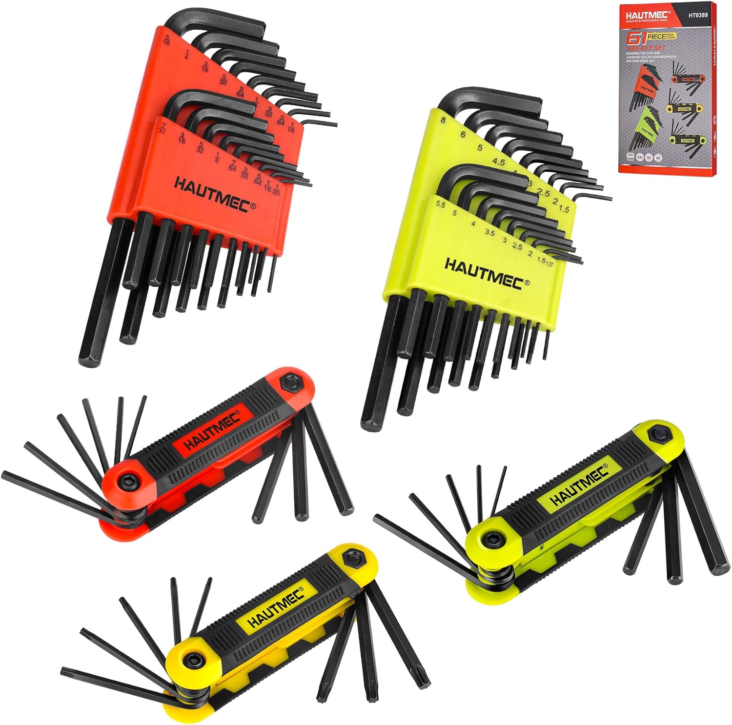 HAUTMEC 61-Piece Allen Wrench Set, Includes 25PC Folding, 36PC Long And Short Arm Hex Key Set, Metric/SAE/Torx Size, Chrome Vanadium Steel, Chamfered Edge for General Applications, HT0389