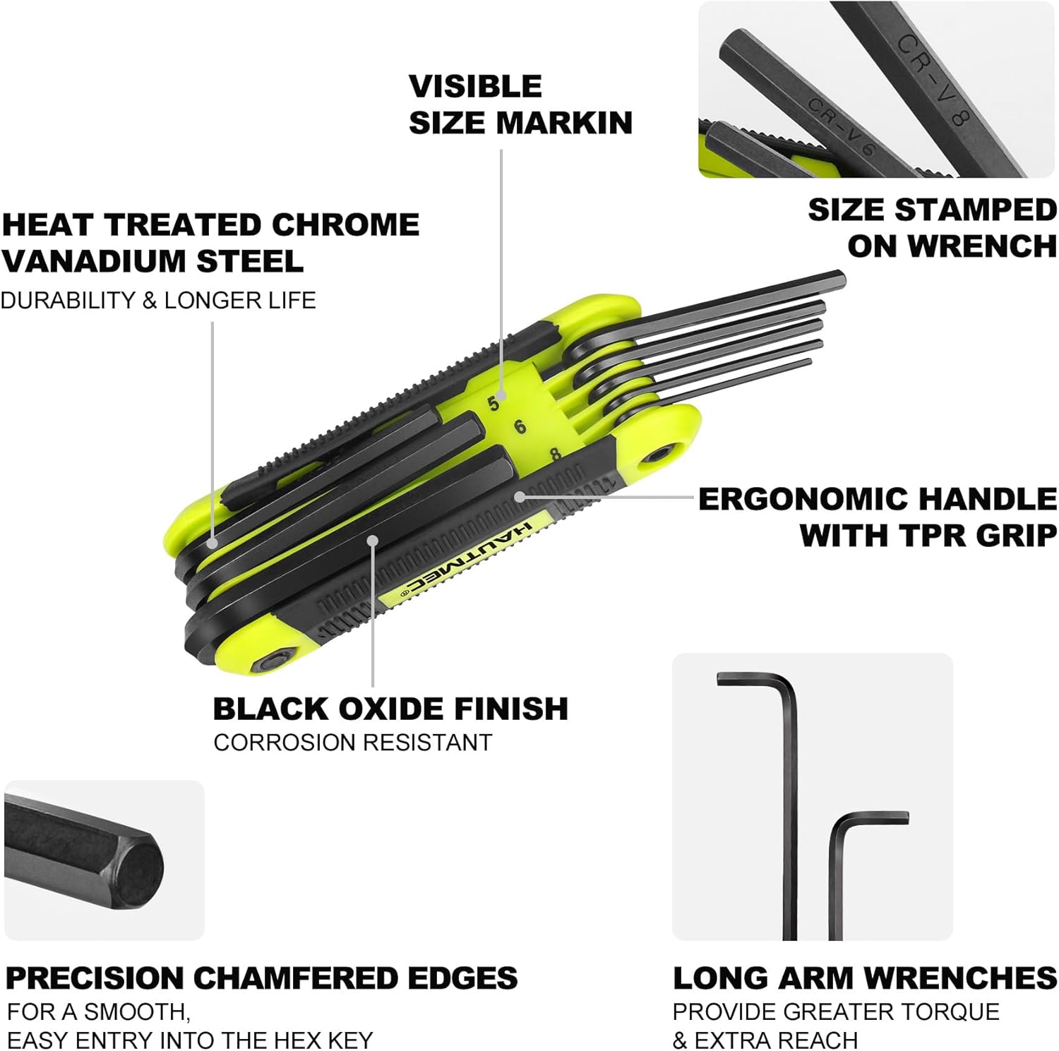 - Compact Design: Each HAUTMEC folding allen wrenches set is compact and lightweight. Keys are designed to resist rotational distortion and rotate 270 degrees for better access and torque.It is easy to carry in your pockets or tool box.