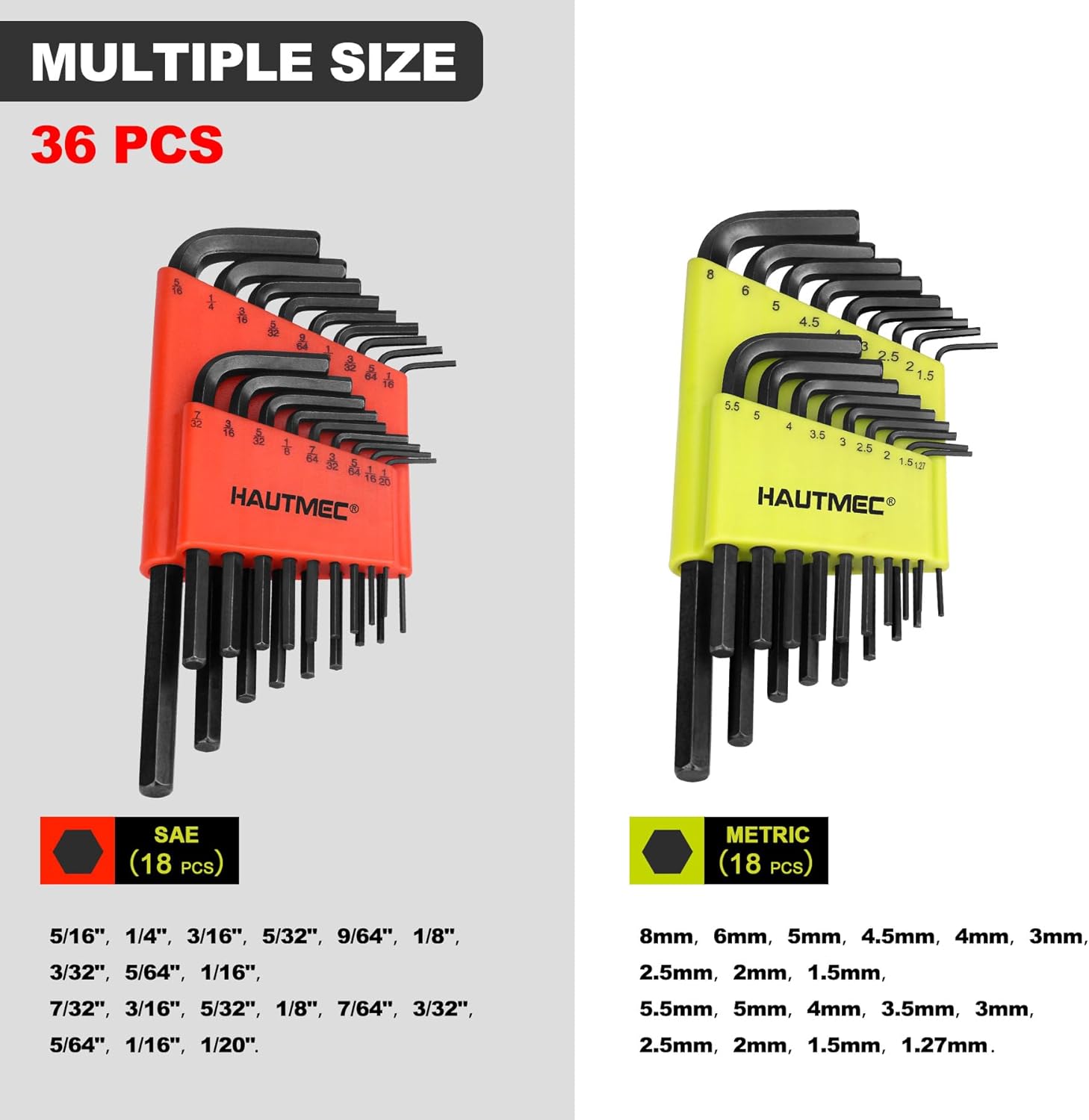 - Versatile Tools:HAUTMEC Allen Wrench Key Sets are useful tools and small enough to go into the tight space where traditional hex key can not reach. You can use them to easily tighten or loosen the bolt and nut, suitable for auto repair, DIY project, and household appliance maintenance.
