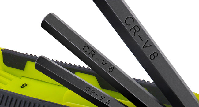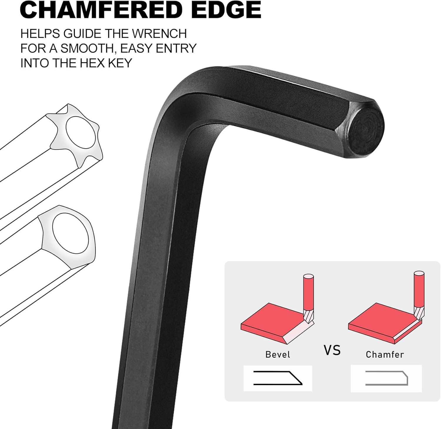 - Premium Quality: 5-piece folding hex key set is made of heat treated chrome vanadium steel for strength and durability; Coated with black-oxide finish resist rust and corrosion, which stands up to tough place. Chamfered ends helps guide the wrench for a smooth, easy entry into the fastener.