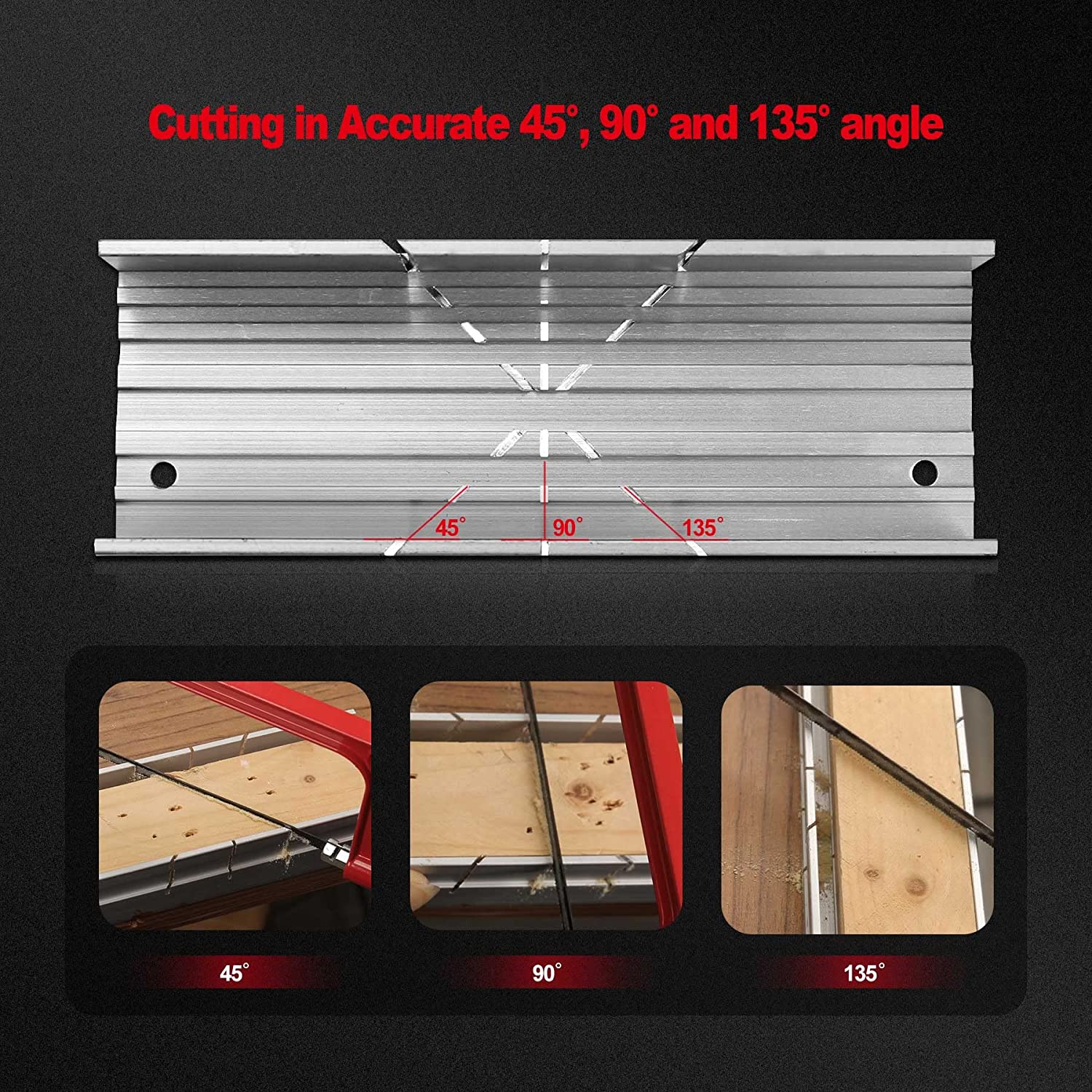 - Aluminum Alloy Miter Box: Strong aluminum construction for portable and durable, extended lip and size with 90 degree's angle design make it stable to position on your workbench,Cutting in Accurate 45°, 90° and 135° angle use, DIY tool for small molding and framing projects around the house or working place