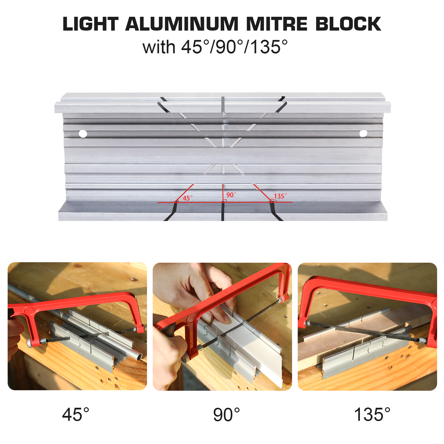 - 【Accurate Angle Cutting】Features precision-guided slots for 45°, 90°, and 135° angles, allowing smooth and accurate cuts for trim, framing, and molding projects