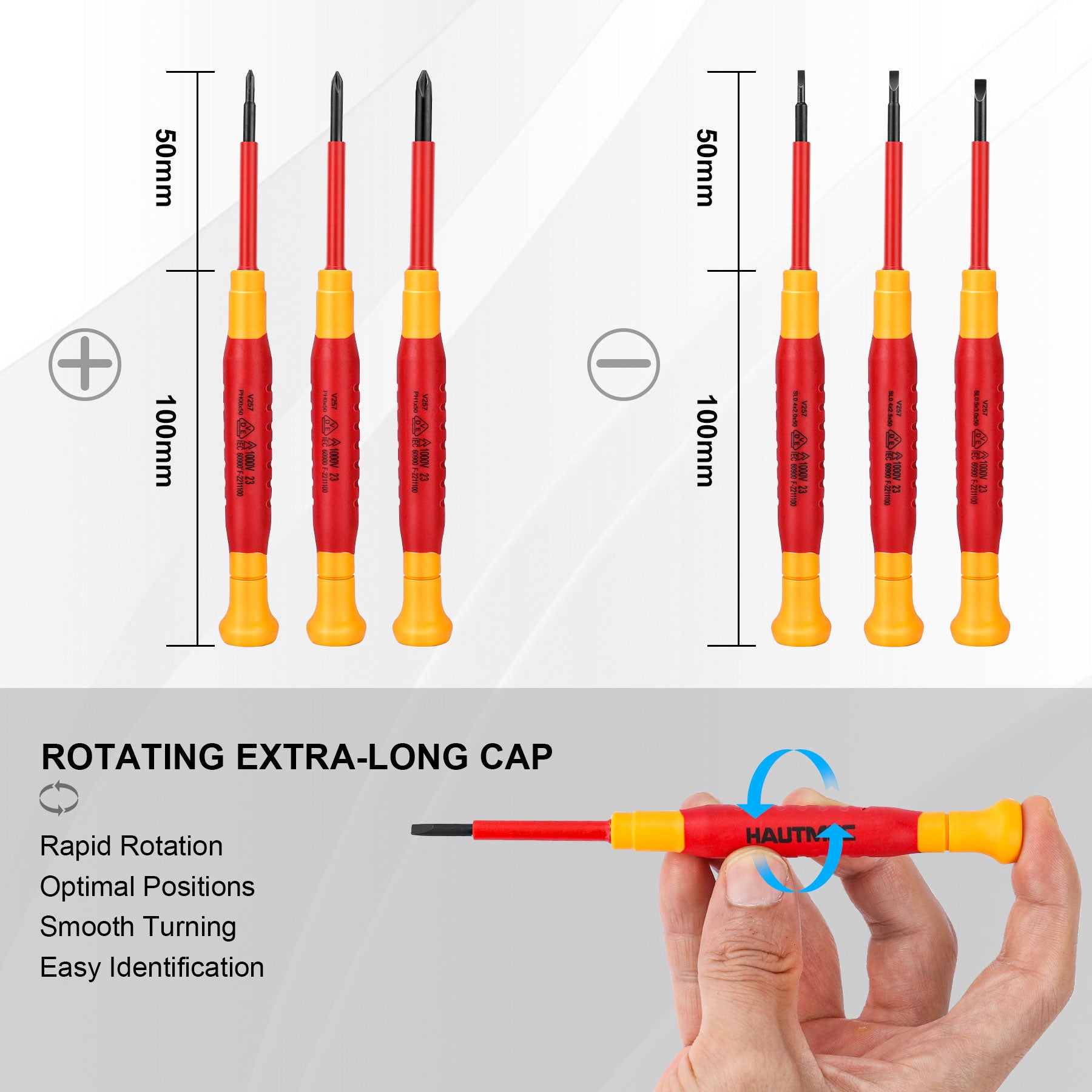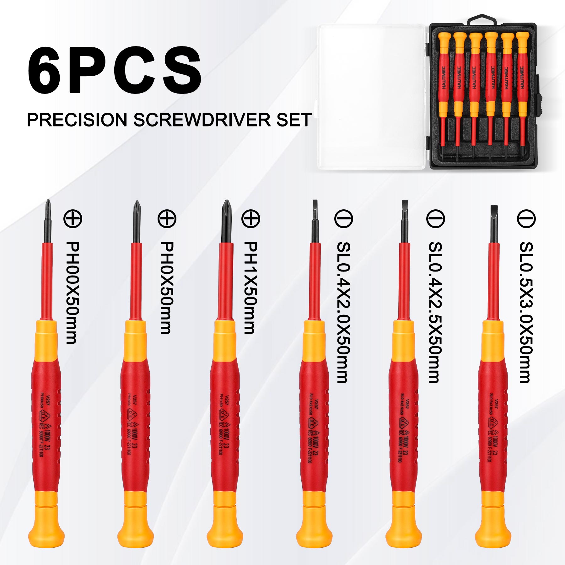 - The HAUTMEC 6Pcs Precision Insulated Screwdriver Set includes precision Slotted 2.0 mm, 2.5 mm and 3 mm screwdrivers and precision Philips #00, #0 and #1 screwdrivers for your precision work