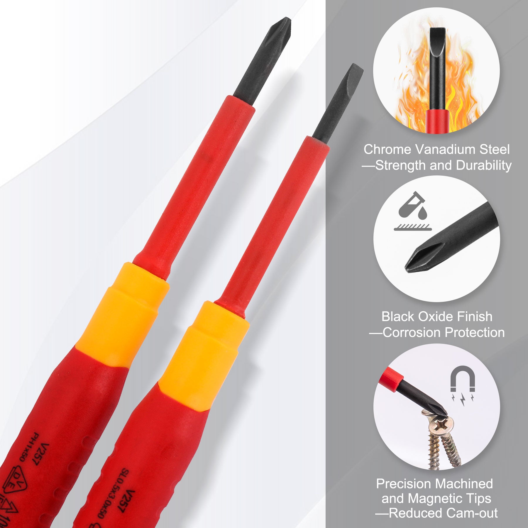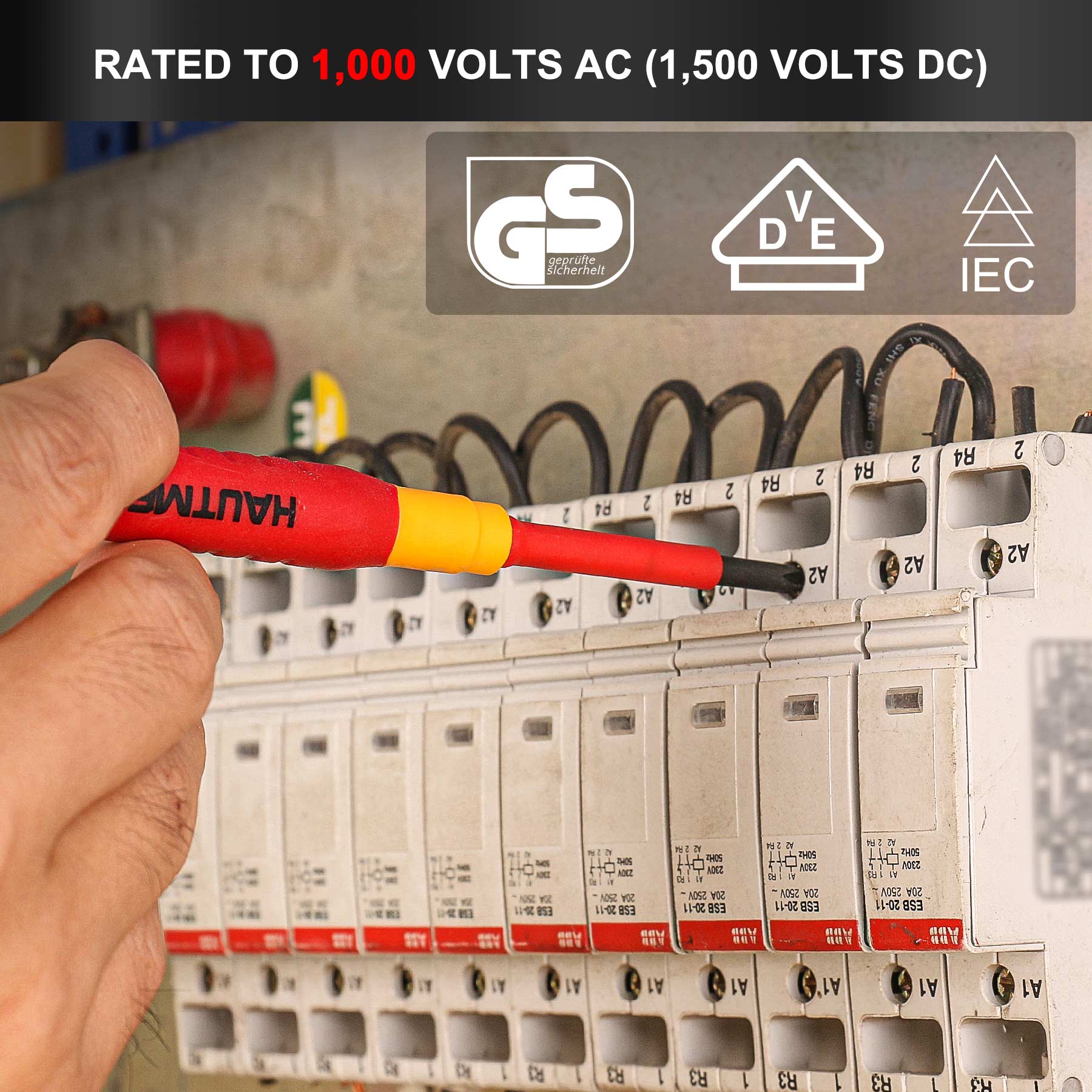- Every HAUTMEC insulated Screwdriver rated to 1,000 volts AC (1,500 volts DC) for safety and peace of mind