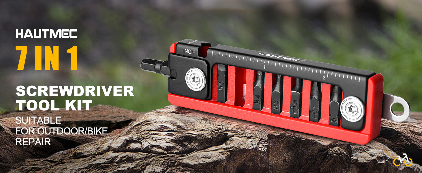 HAUTMEC 7 IN 1 Bike Multitool with Hex Wrenches, Screwdrivers, Ruler, Joint Levers, Key Ring for Bike Repair Tool Kit Christmas Gifts for Him Husband Birthday Gifts from Daughter Son Wife Kids, HT0420