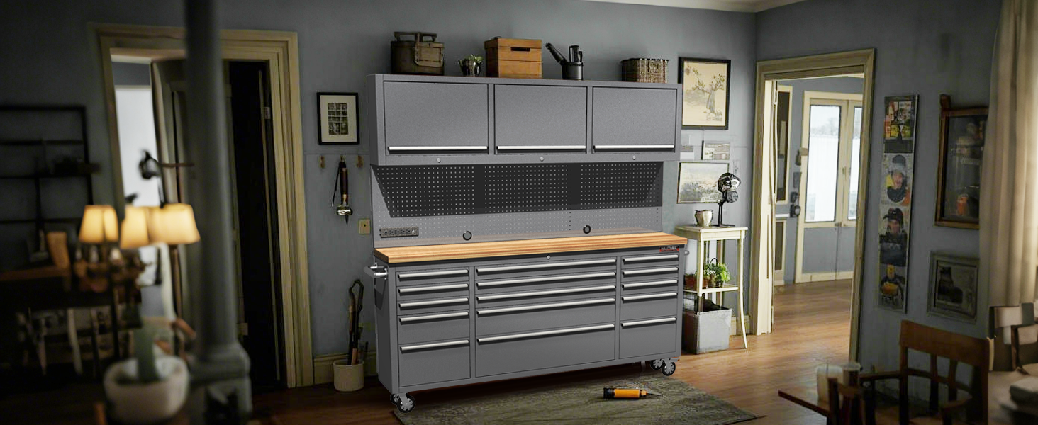 - 【ETL-Certified Power Strip & Convenient Mobility】Equipped with an ETL-certified power strip that features 2 USB ports and 4 outlets, this workbench makes powering your tools and devices easy. Two round holes in the middle of the cabinet allow you to route power cords through to the back, ensuring clean and organized cable management. The 4 heavy-duty casters (2 with locks) allow for easy mobility, and the 4 lockable cabinets keep your tools safe and secure