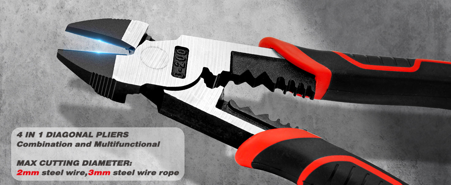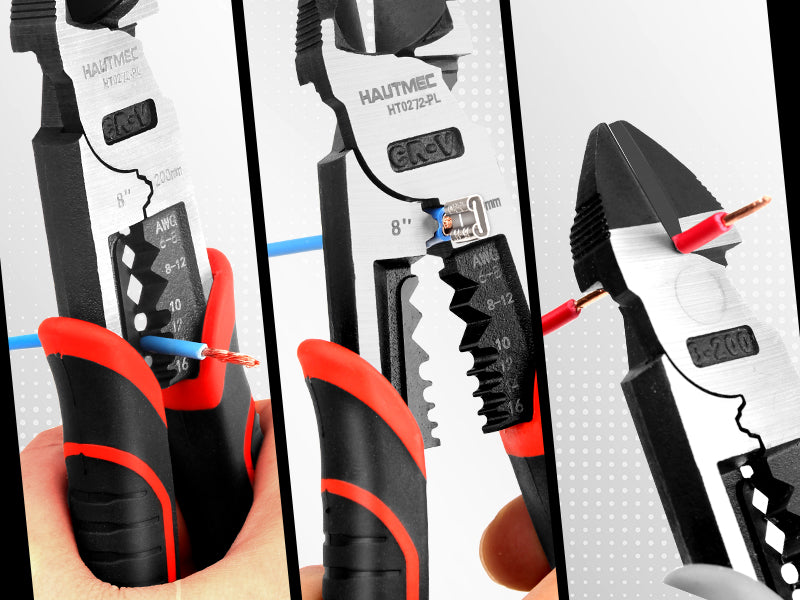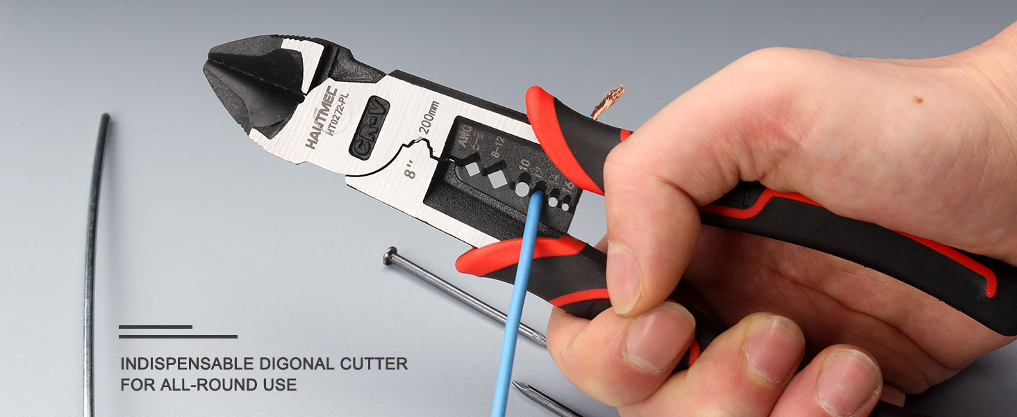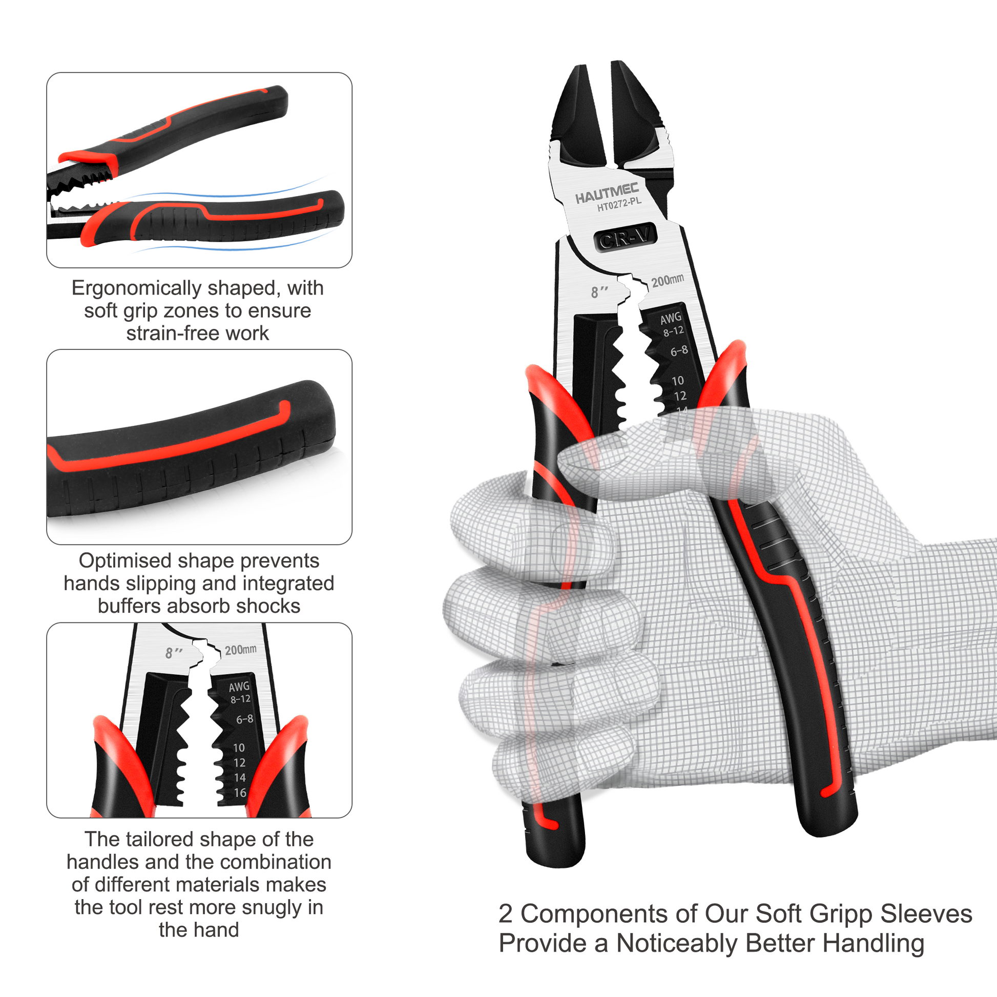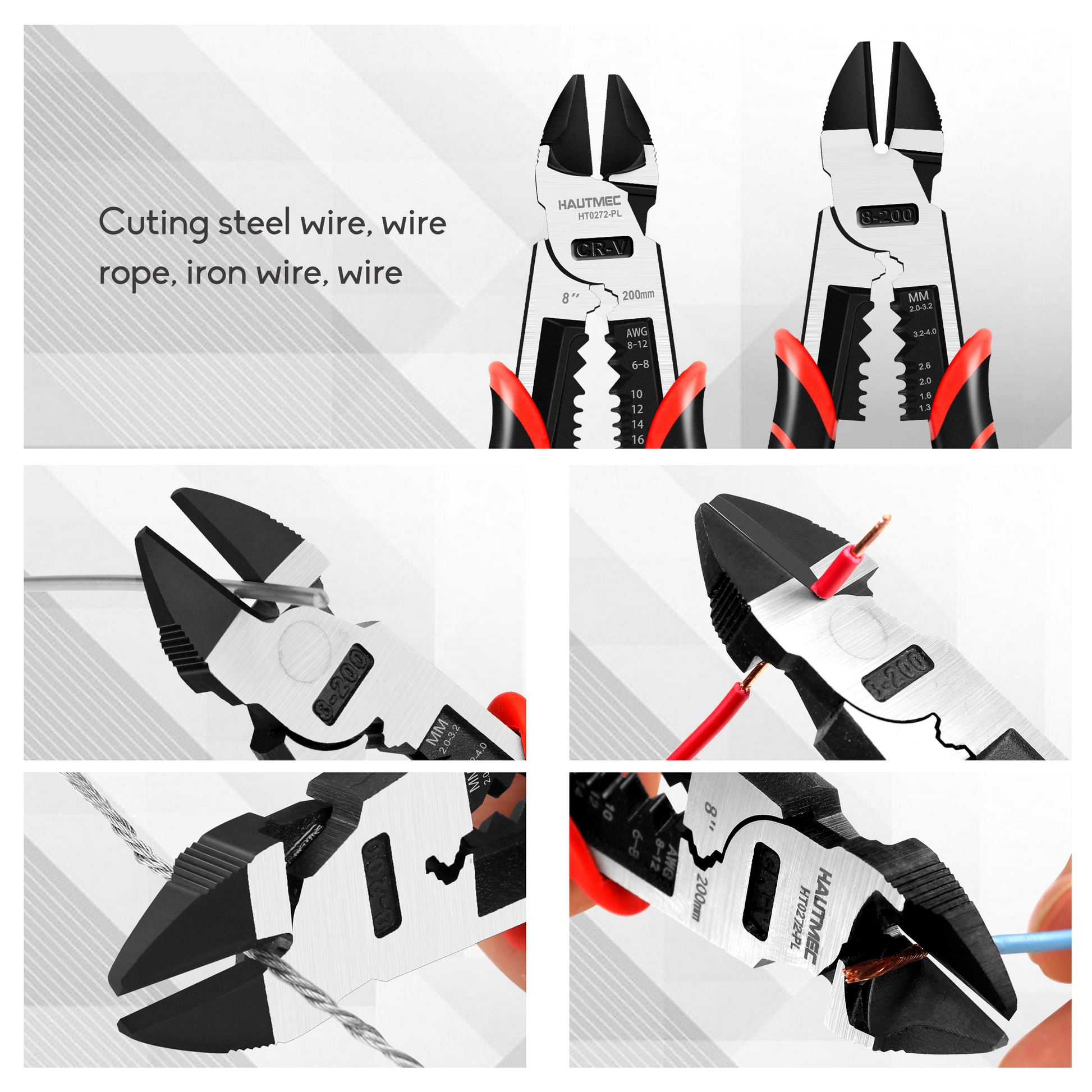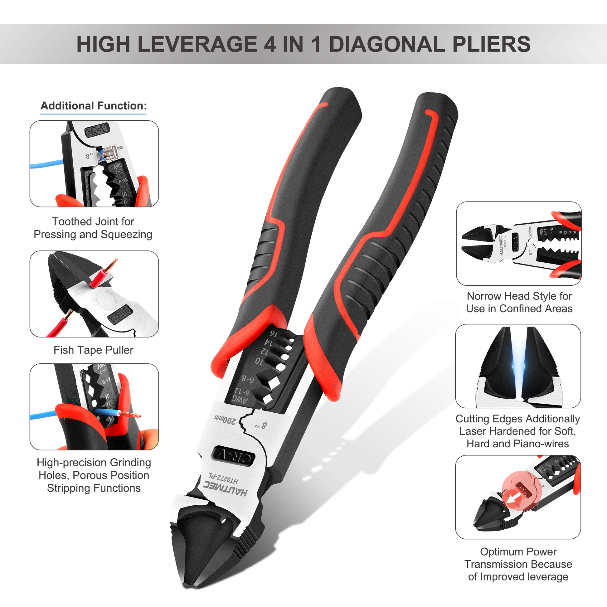 HAUTMEC 8" Wire Cutters,Pro-High Leverage Diagonal Pliers,4 in 1 Multifunction Heavy Duty Side Cutter HT0272-PL
