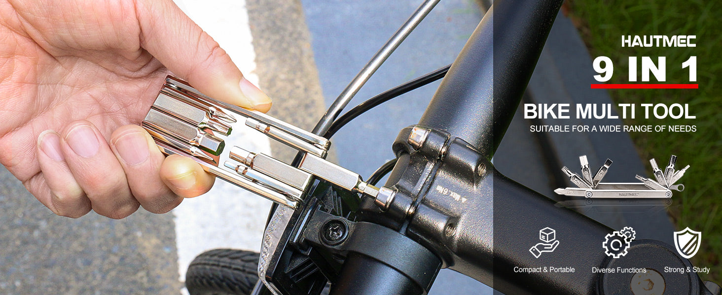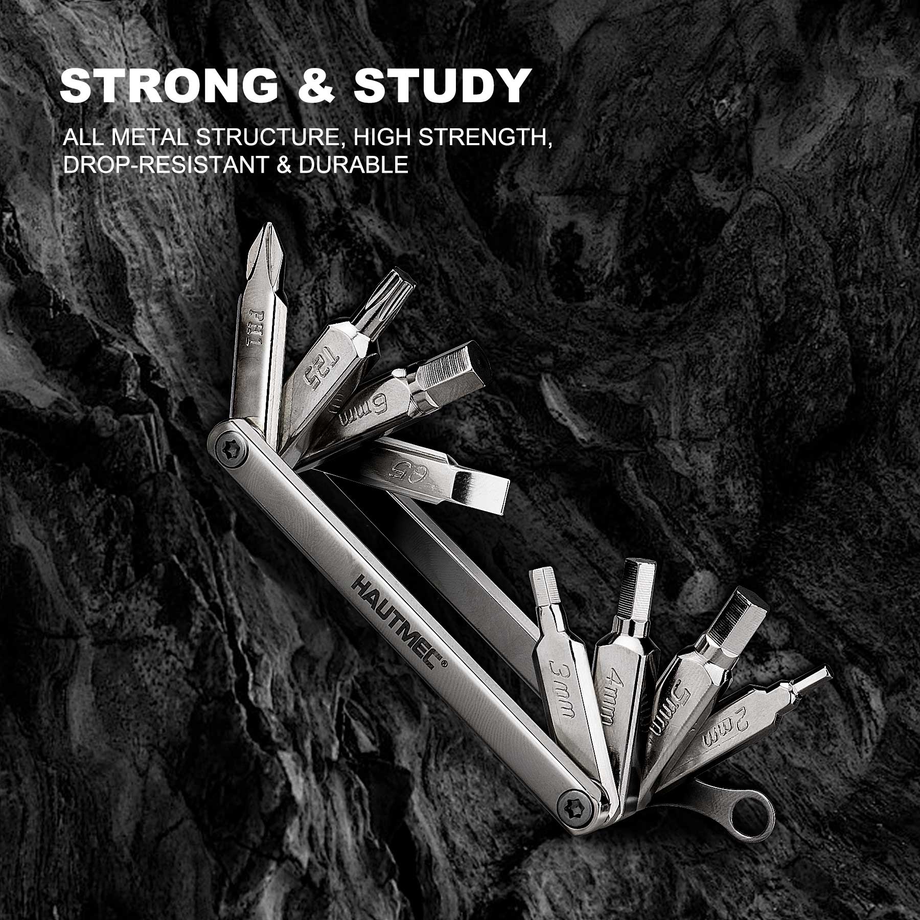 HAUTMEC 9 in 1 Bike Multitool, Mini Bike Repair Tool Kit for Road and Mountain Bikes, Lightweight Stainless Steel Bike Tool With 2/3/4/6mm Inner Hexagon and Phillips Screwdriver Multitool HT0418-BT