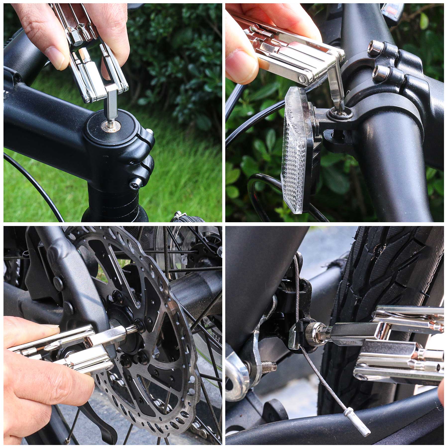 - 【DURABLE TOOL FOR SHOCK RESISTANCE】The bicycle tool kit is made out of high strong premium stainless steel with nickel plating on the surface, making the tool durable, waterproof, rusty, and not jamming.