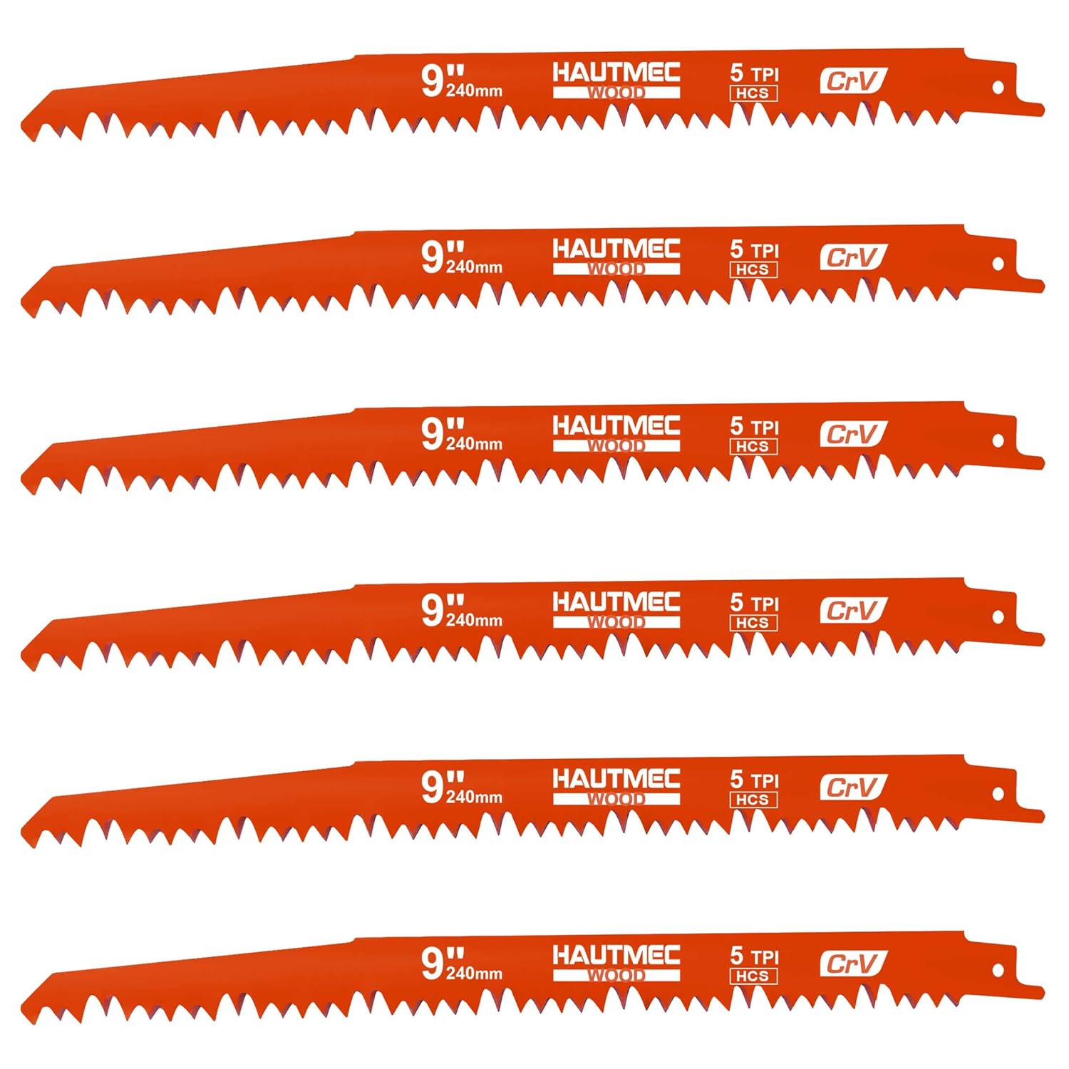 HAUTMEC 9 Inch Reciprocating Saw Blades,Sawzall Blades,Pruner Saw Blades 6 Piece Set for Wood and Trimming Cutting HT0167-CT