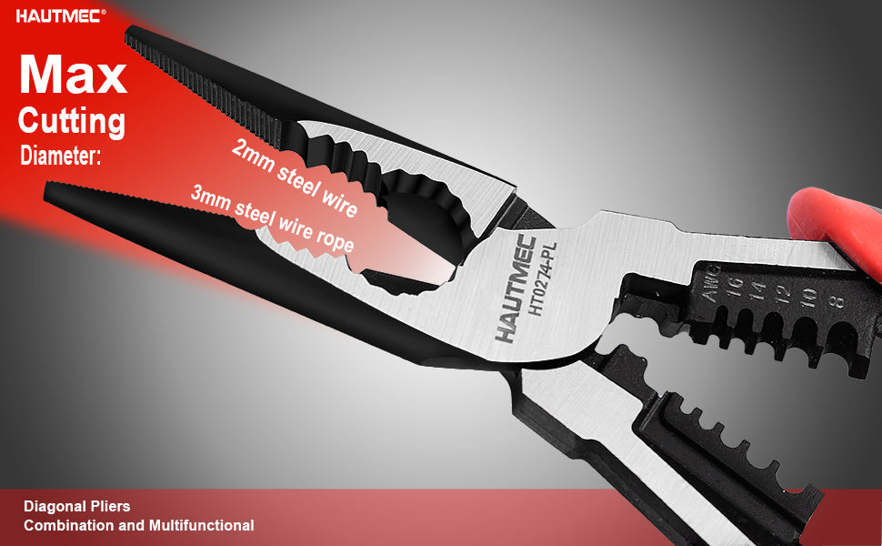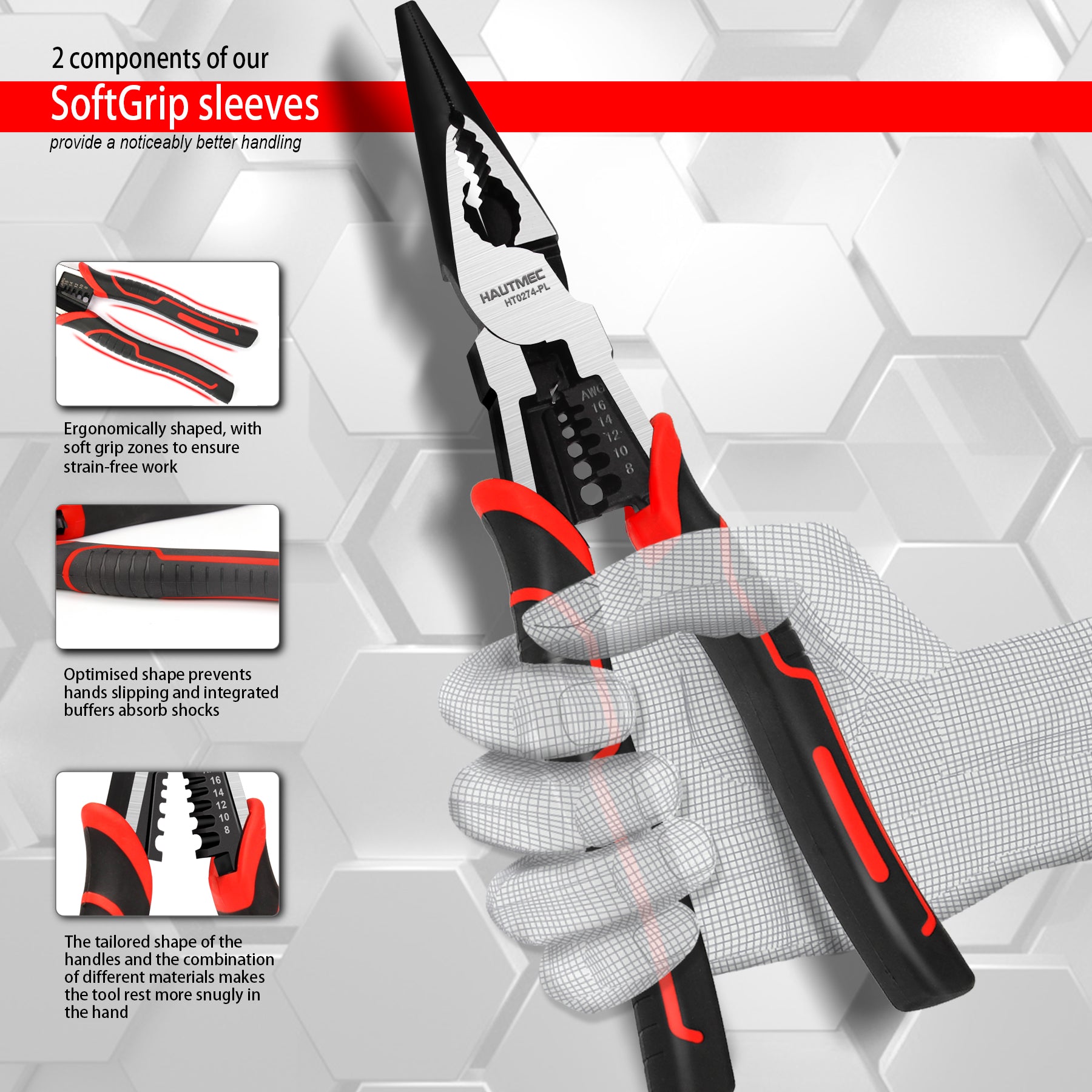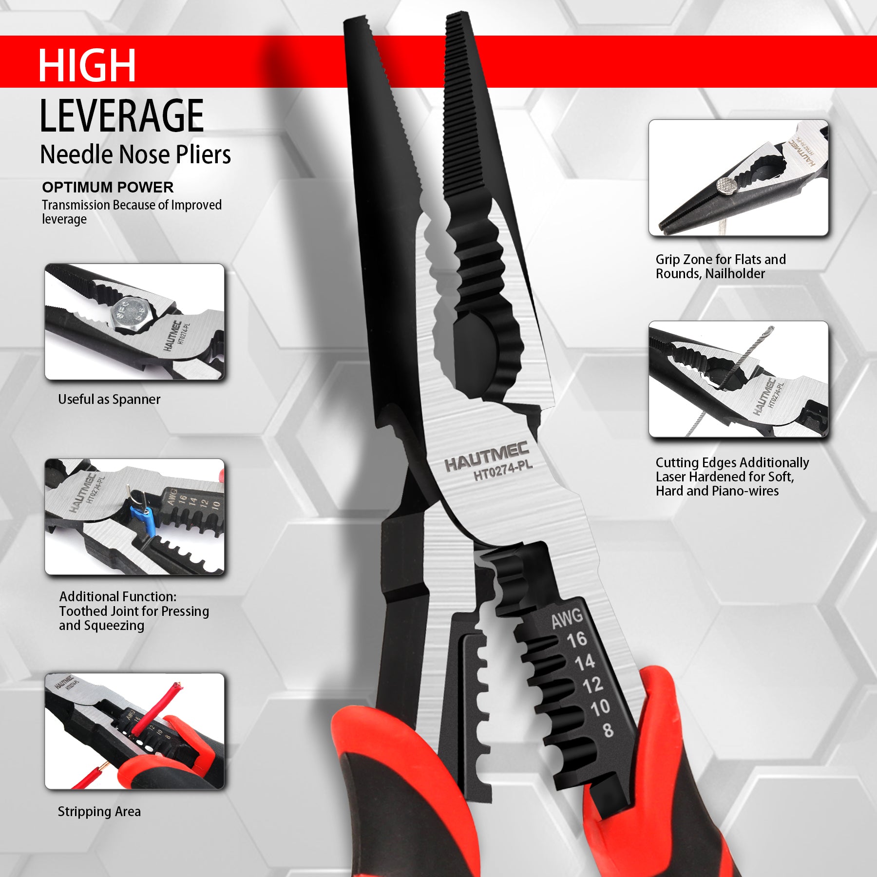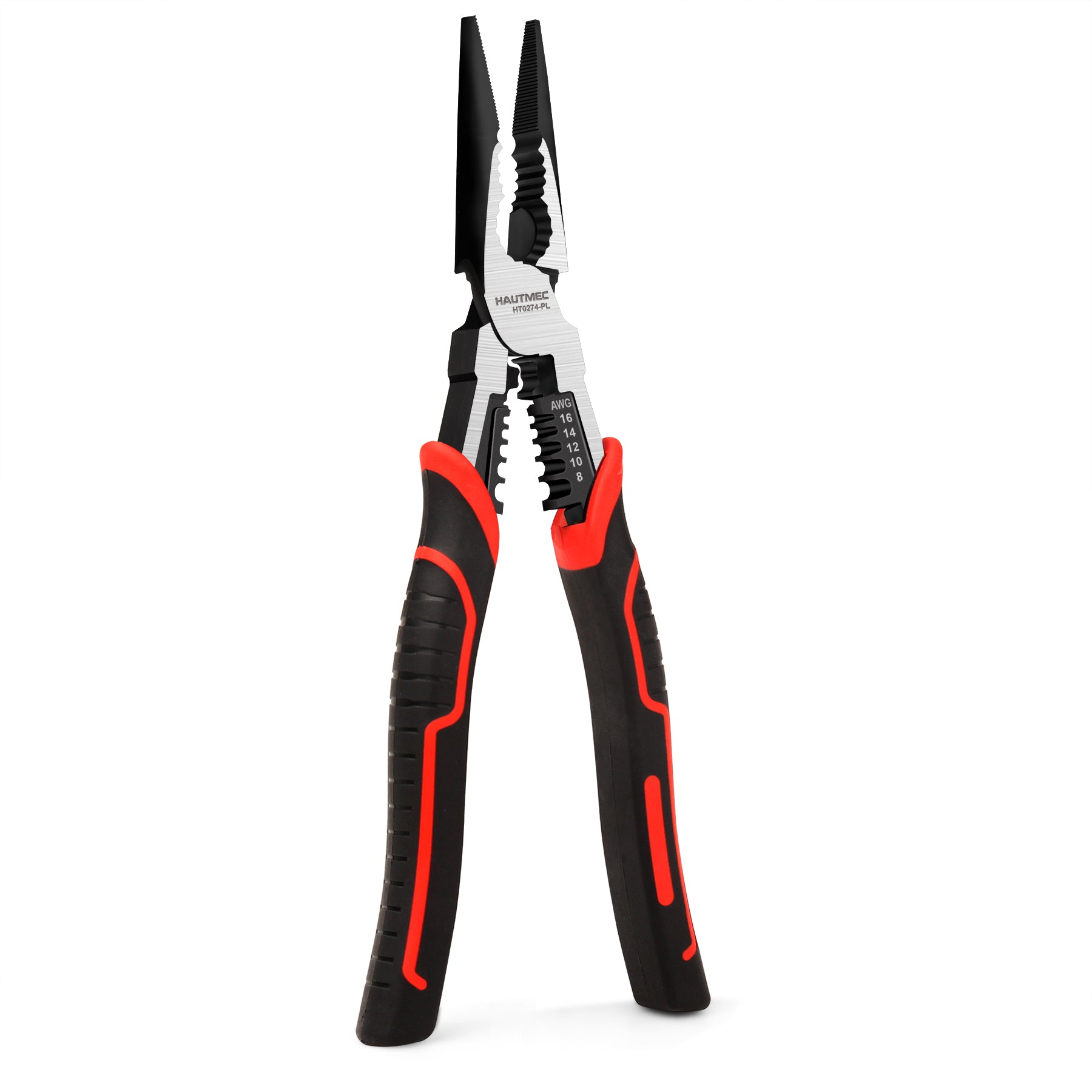 HAUTMEC 9" Needle Nose Pliers,High Leverage Combination Pliers 4 in 1 Multifunctional Heavy Duty Long Nose Pliers HT0274-PL
