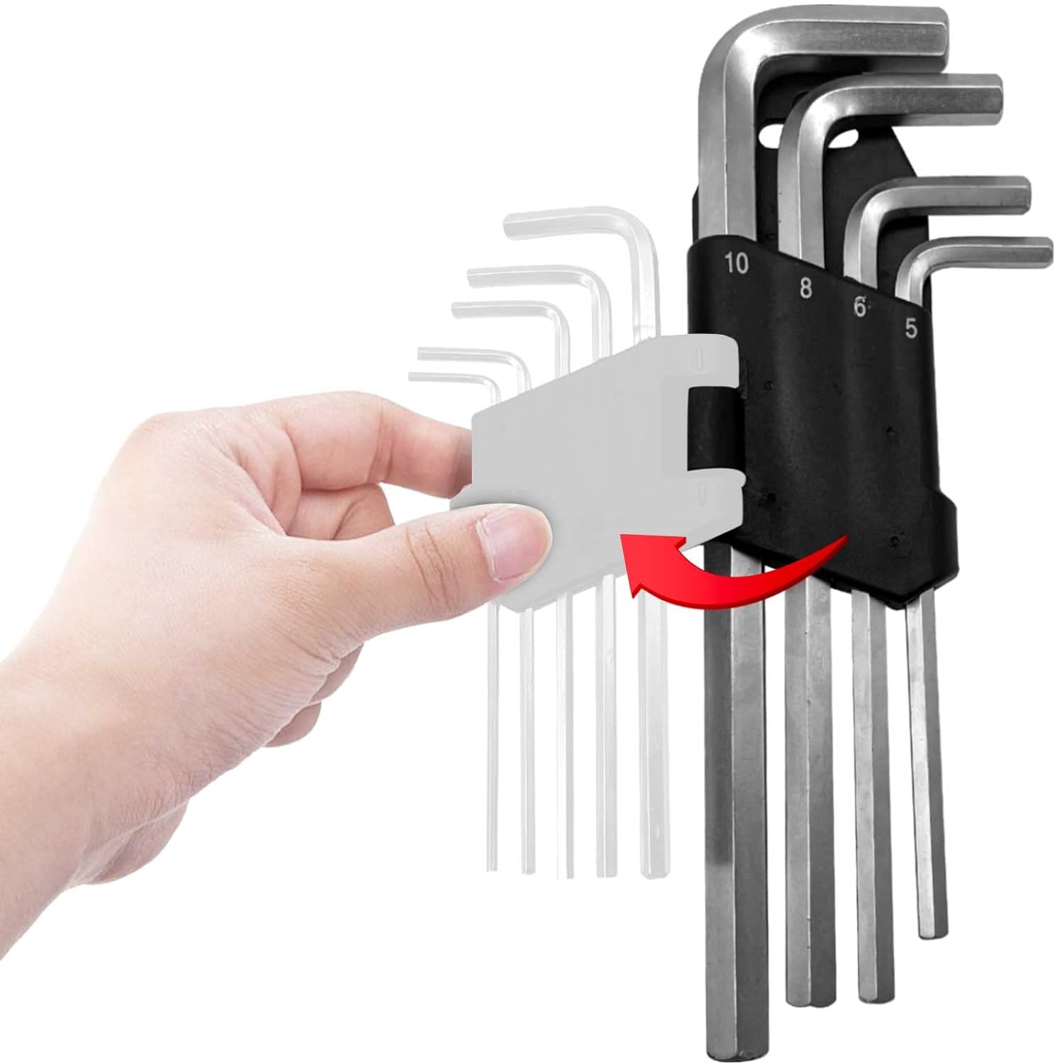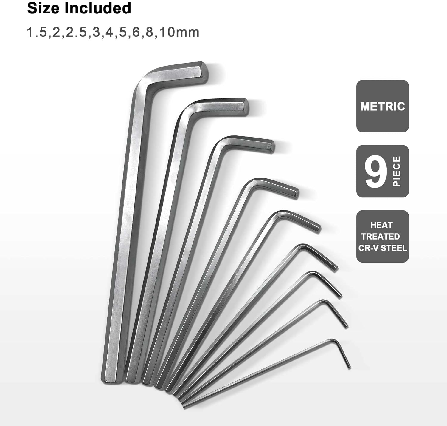 - MORE SIZE COVERAGE - Includes 9 different sizes from small to large: Metric 1.5, 2, 2.5, 3, 4, 5, 6, 8, 10mm. Works perfectly in confined space, and is less prone to stripping. Portable for both home use and outdoor applicationss