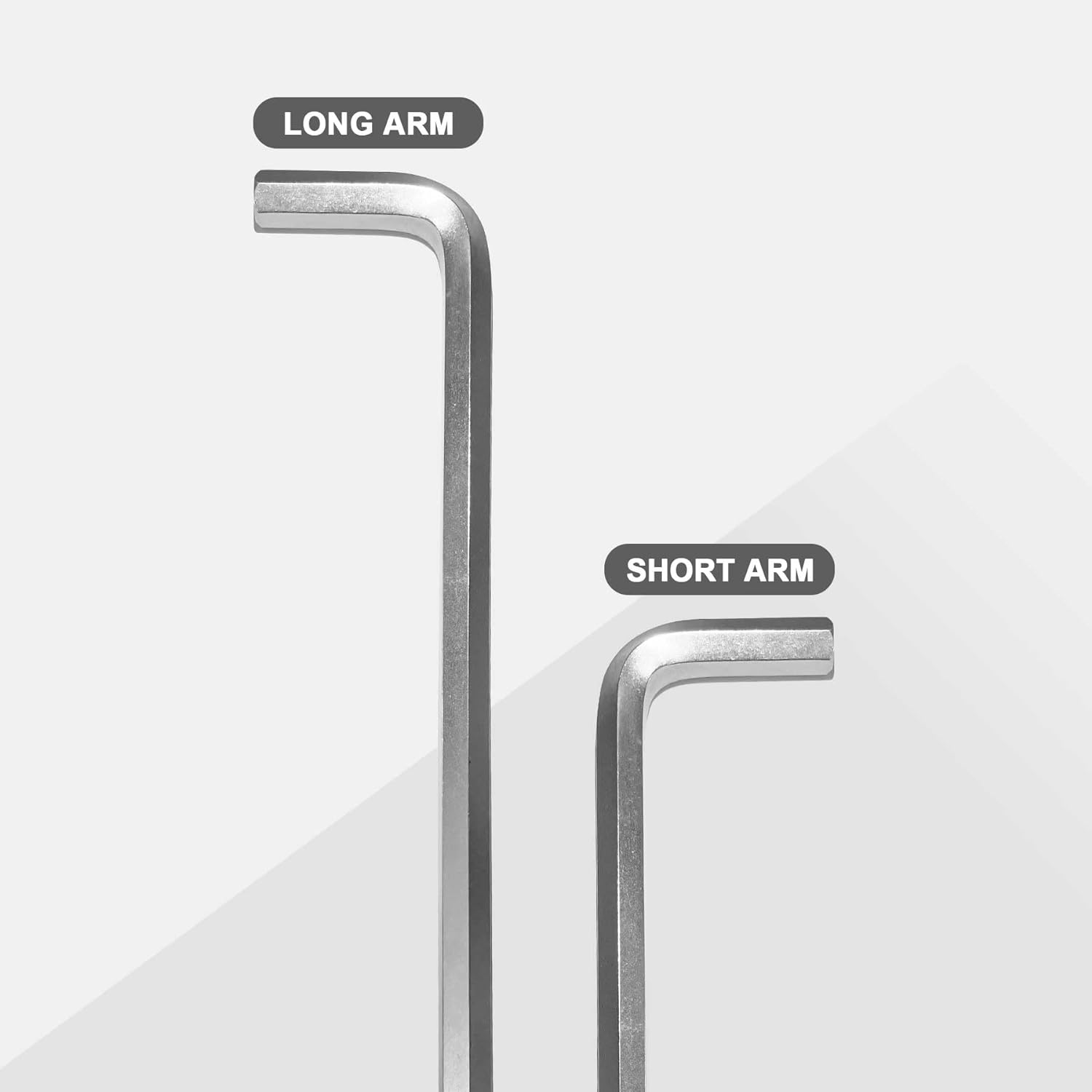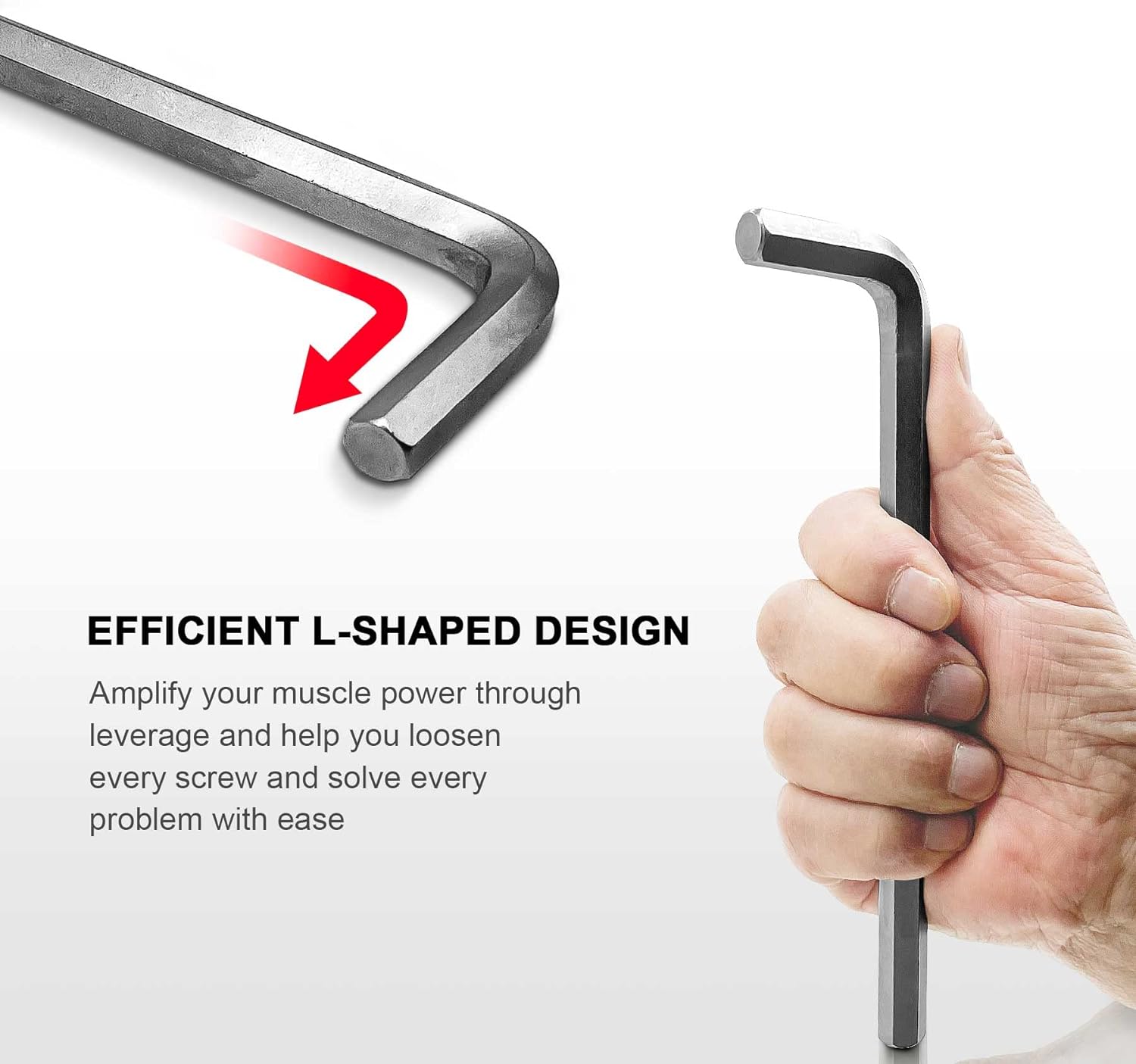 - EFFICIENT L-SHAPED DESIGN - Long/short arm design for longer reach in deeper work situations on the long end and strengthened leverage for tighter fasteners in narrower space on the short end