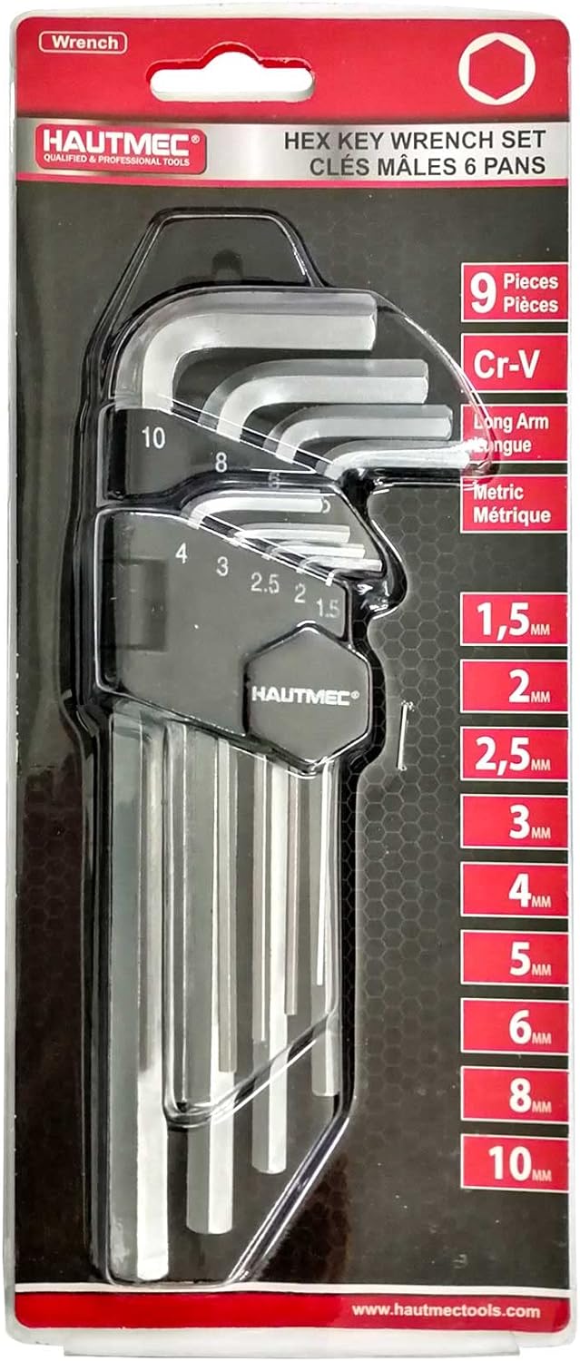 HAUTMEC 9-Piece Hex Key Allen Wrench Set, L Shape Metric Assortment, Chrome Vanadium Steel, Precise and Chamfered Tips, 1.5-10 mm, HT0221-SS