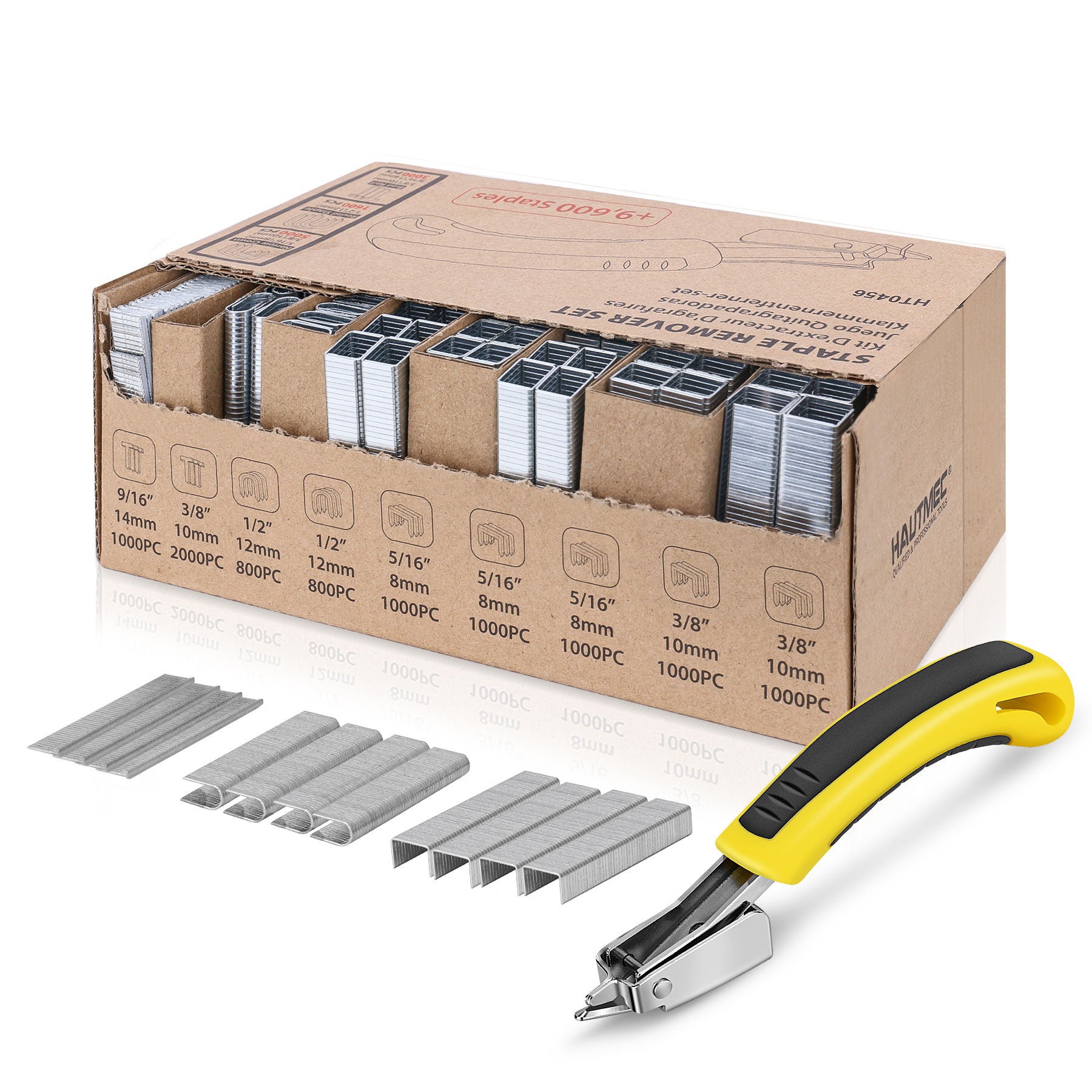 HAUTMEC 9600 Pcs Heavy-Duty Staples with Staple Puller Tool – 3 Types (D-Type 5000, U-Type 1600, T-Type 3000) for Upholstery, Carpentry, Repair & Packing – HT0456