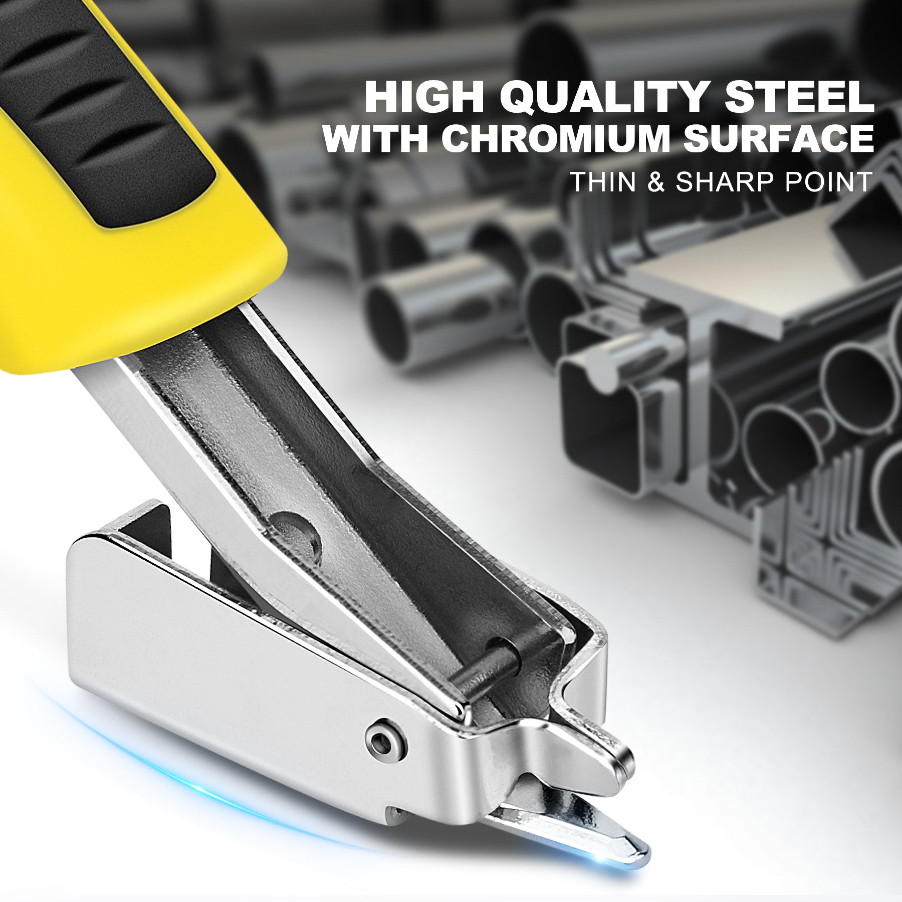 - 【Premium Construction】Crafted from high-quality steel with a galvanized and chromium-coated surface, our staples and remover tool offer superior corrosion resistance and long-lasting durability.