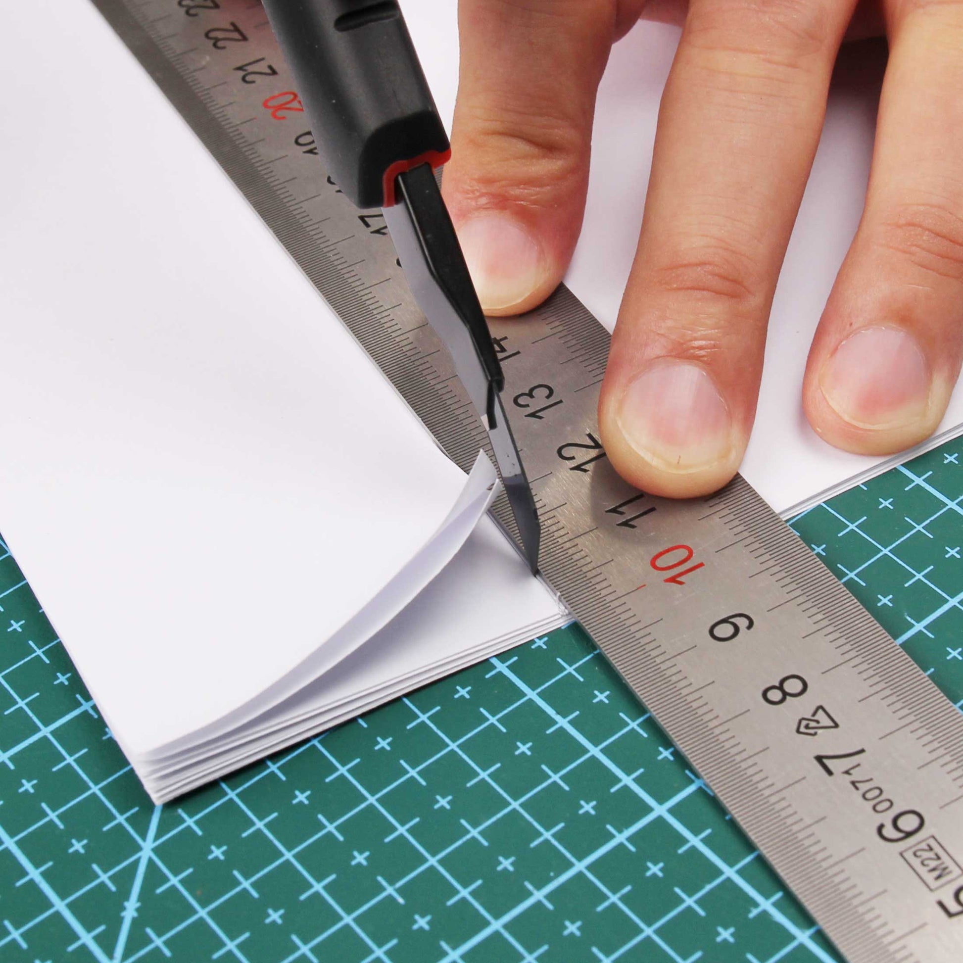 - EASE OF USE - The eyelet allows for handy connection to a lanyard or storage on a peg hook. The end-cap acts as a blade snapper and a quick snap of the used blade reveals a fresh sharp edge (13 segments included); a blade cabin for 2 extra blade storage(extra blade not included)