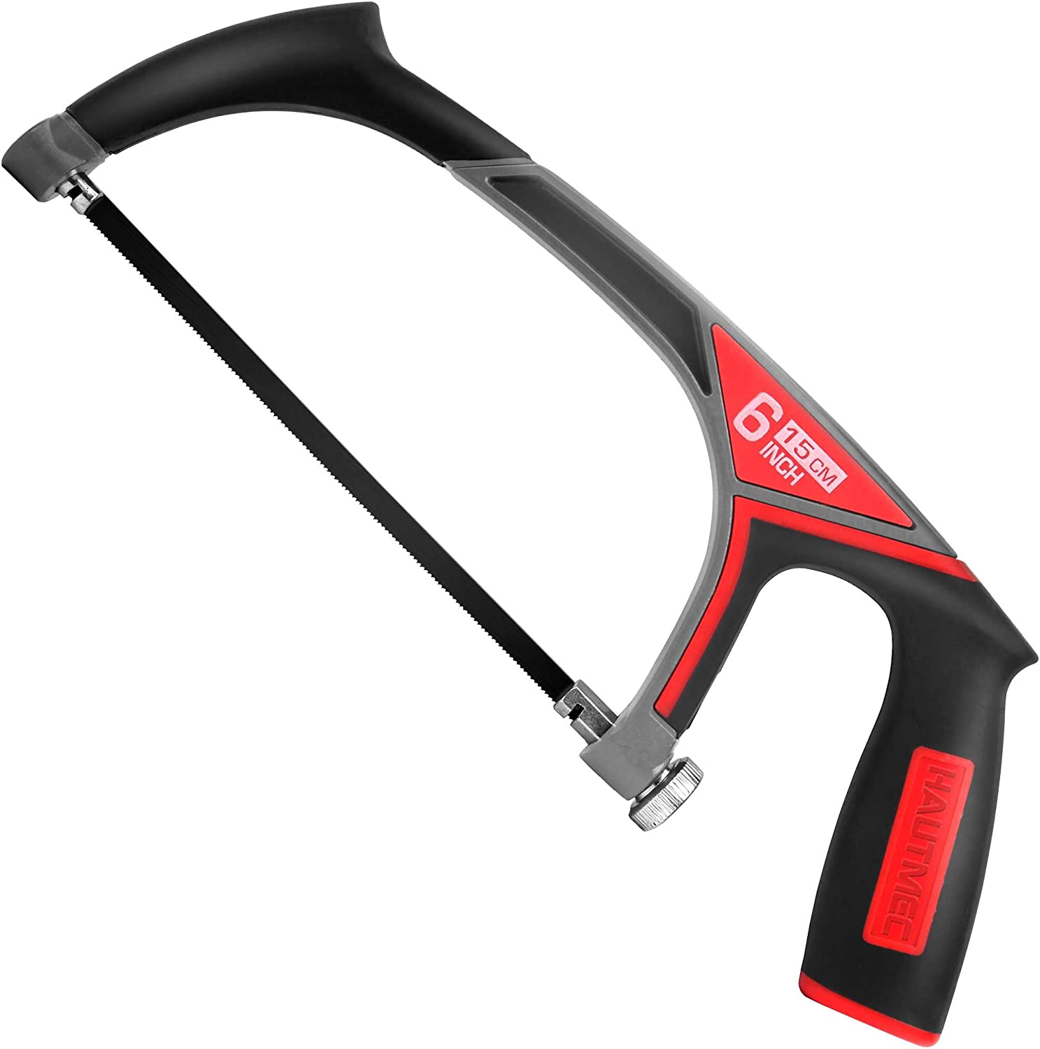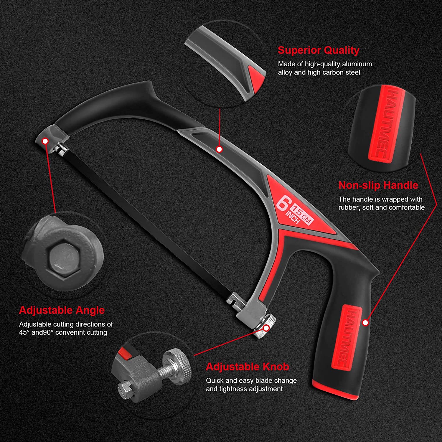 HAUTMEC Adjustable Hacksaw Frame Set, 6 Inch Small Hand Saw with 1PC Hacksaw Blade, 150mm Compact Design, 6 Cutting Angles for Sawing Wood, PVC Pipes, Steel Pipes, Frozen Meat HT0145-HS