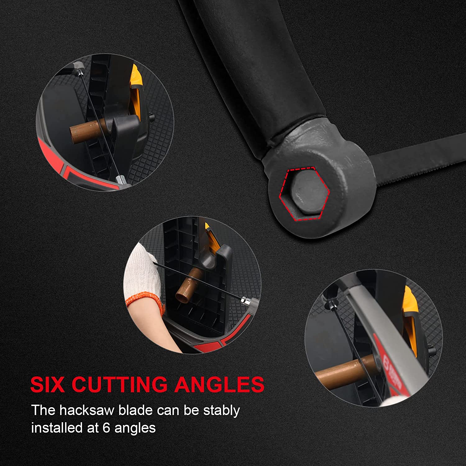 - 【SIX CUTTING ANGLES】The hacksaw blade can be installed stably at 6 angles to meet the needs of actual situations, ensuring different angles of cutting and enabling easier and more convenient sawing