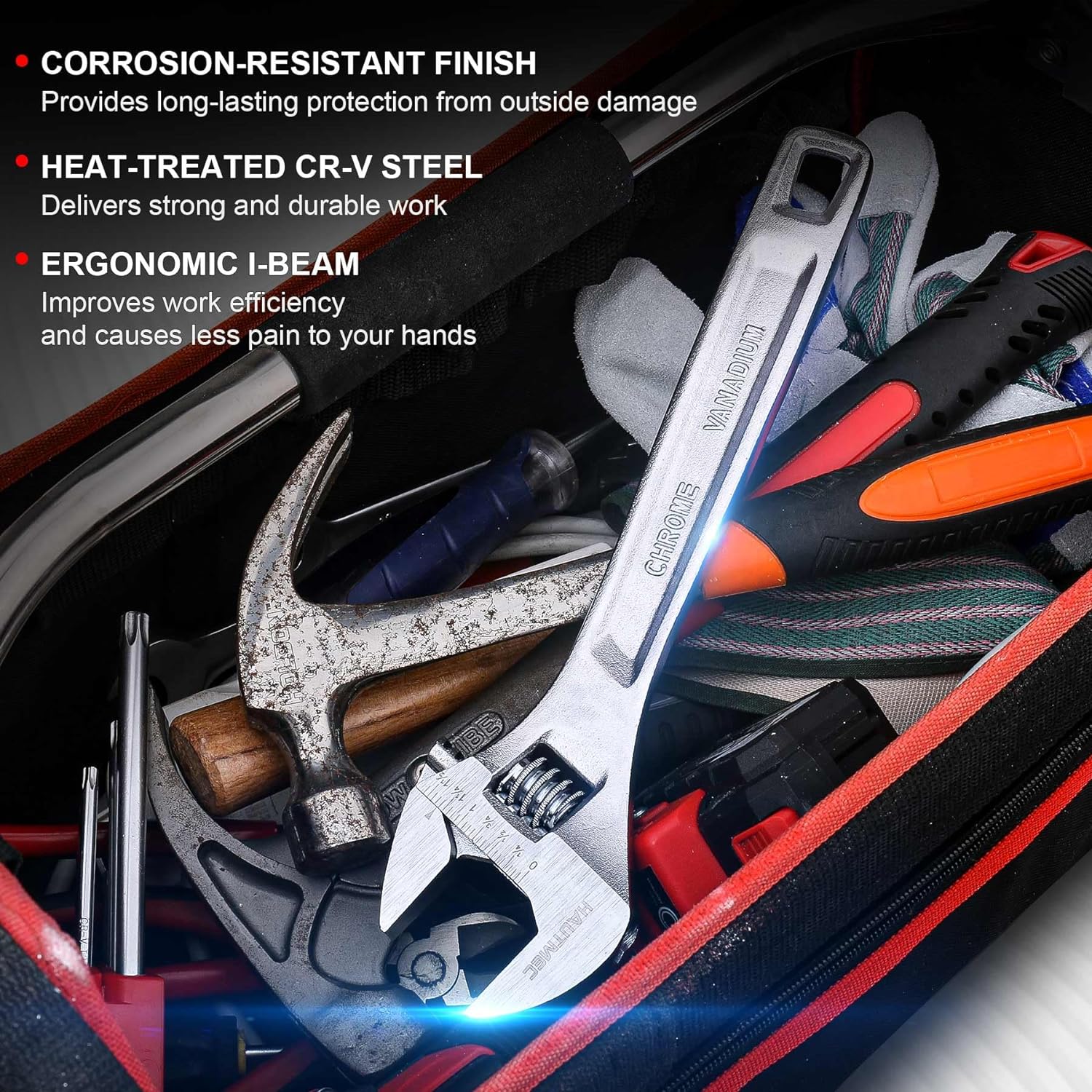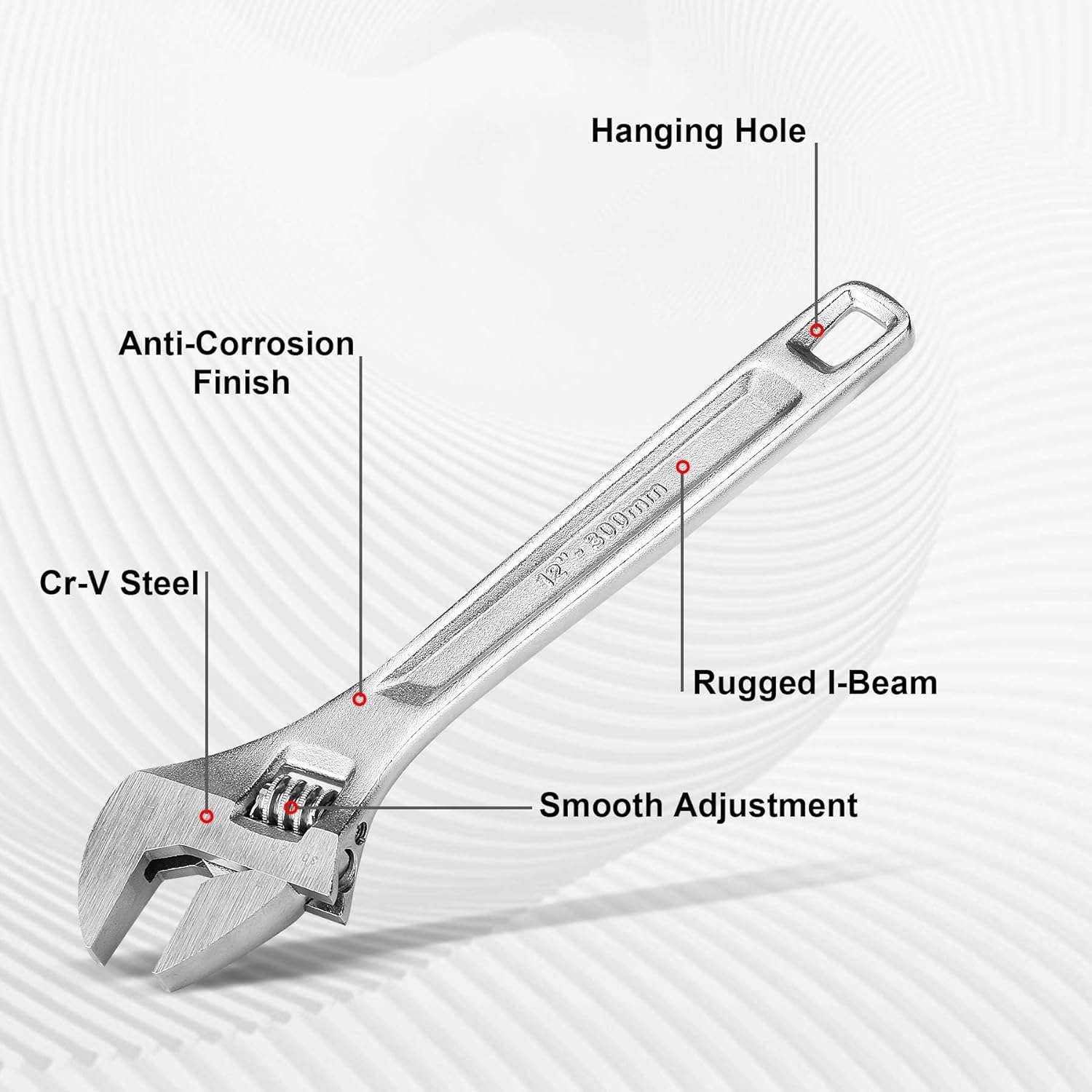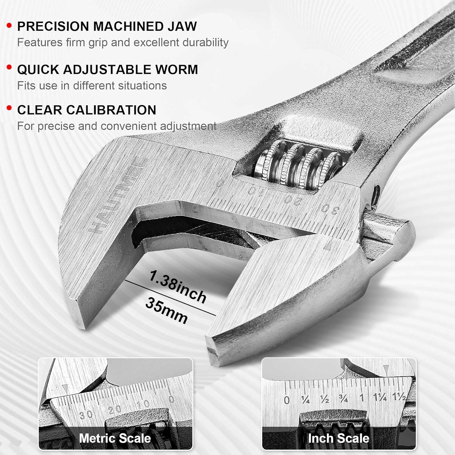 HAUTMEC Adjustable Wrench, 12-Inch Heavy Duty Forged CR-V Steel Universal Wrench HT0310-WR