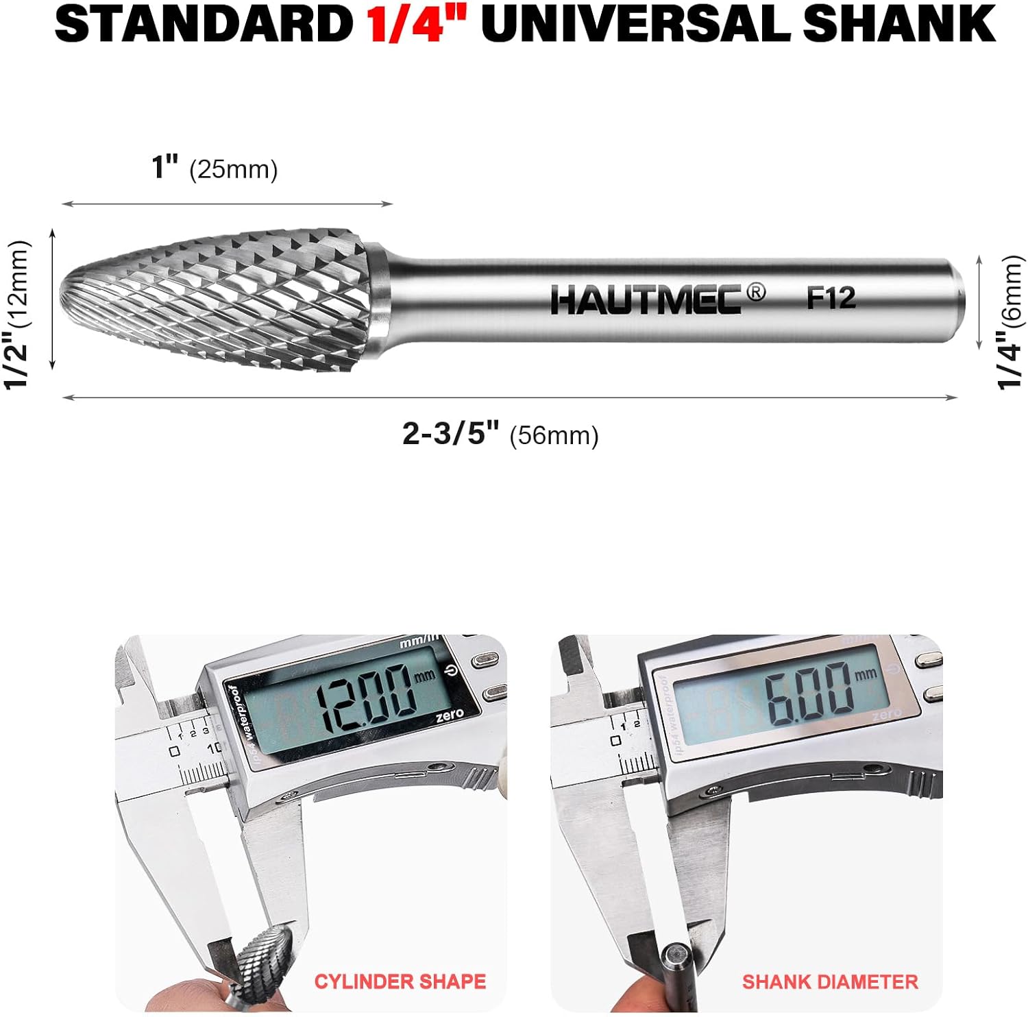 HAUTMEC Tungsten Carbide Rotary Burr Bit – 1/4" Shank, Double Cut Tungsten Rotary File for Die Grinder, Professional Grade, Suit for Metal Carving, Grinding, Engraving & Deburring - HT0157
