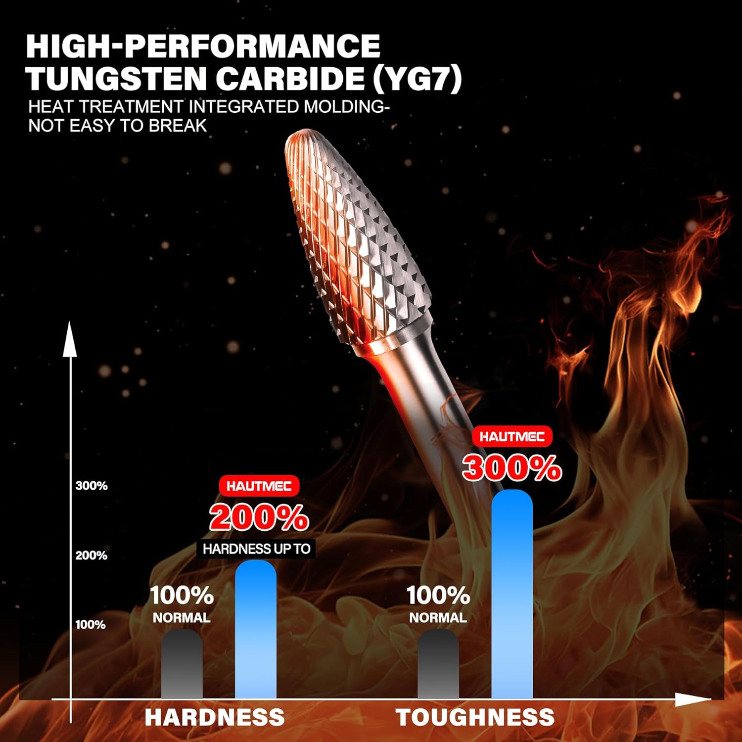 - 【Industrial-Grade Tungsten Carbide】Crafted from premium YG7 solid carbide and heat-treated for maximum hardness and strength. Engineered to withstand extreme workloads with 8X longer lifespan than standard HSS burrs—ideal for high-demand metal fabrication, machining, and industrial use