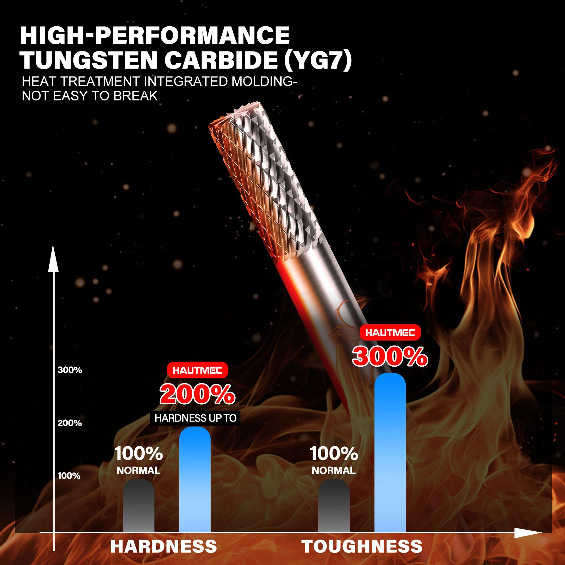 - 【Industrial-Grade Tungsten Carbide】Crafted from premium YG7 solid carbide and heat-treated for maximum hardness and strength. Engineered to withstand extreme workloads with 8X longer lifespan than standard HSS burrs—ideal for high-demand metal fabrication, machining, and industrial use