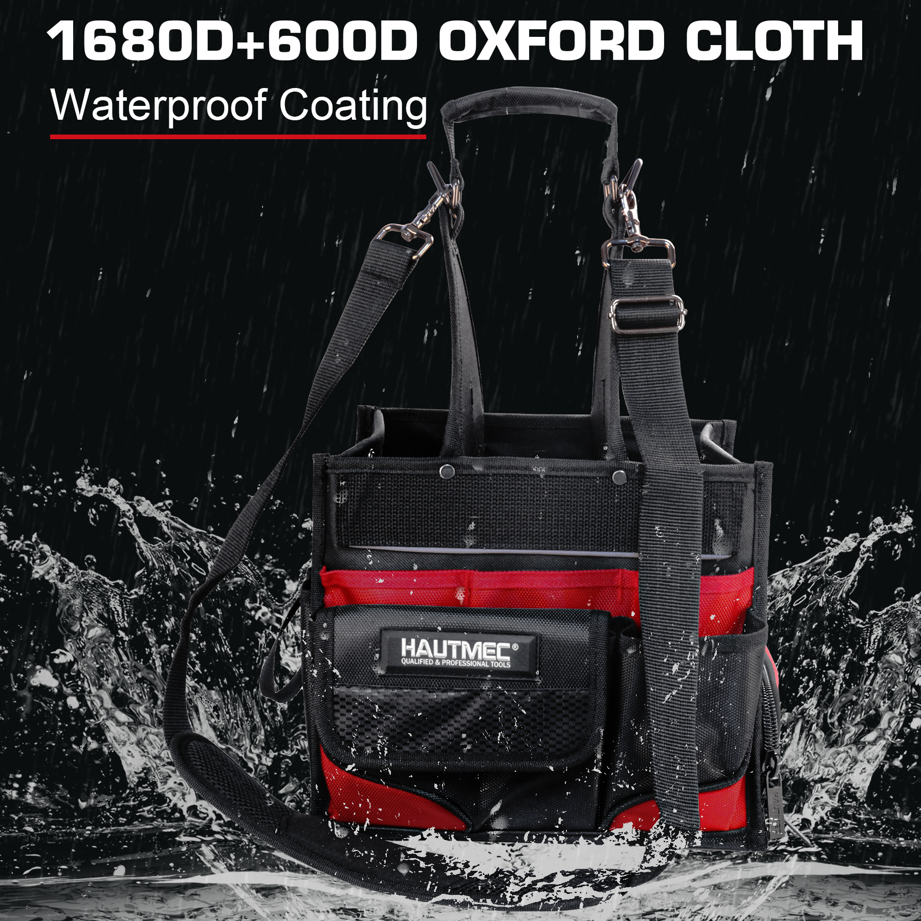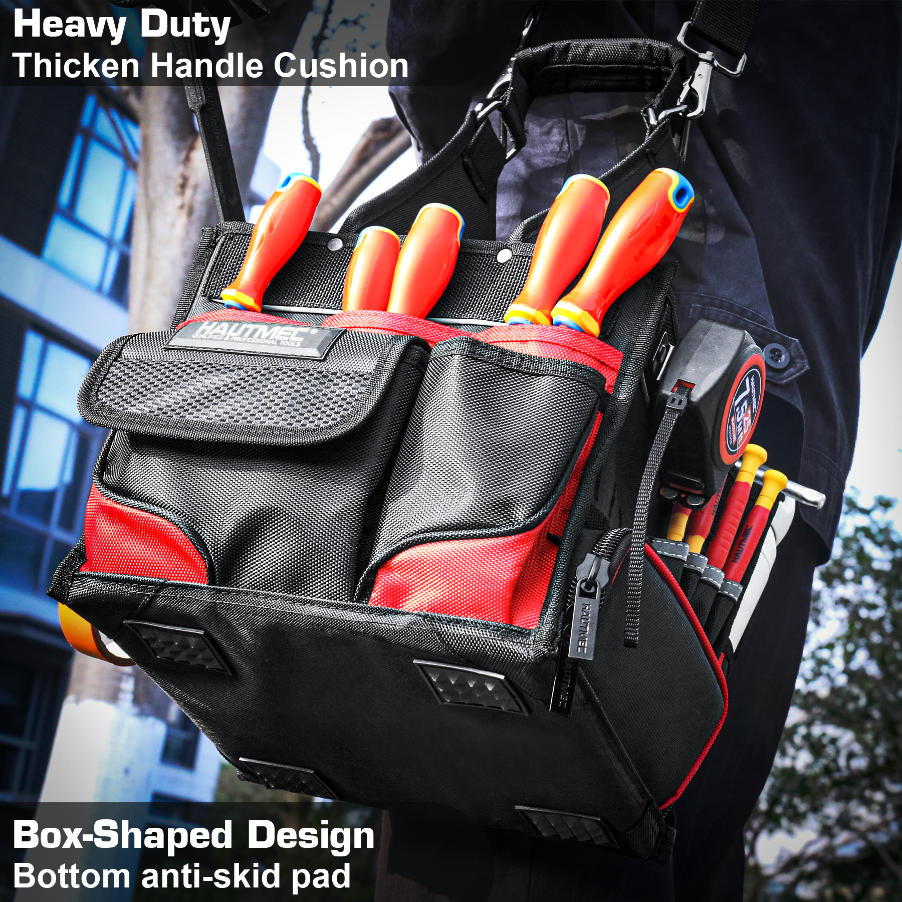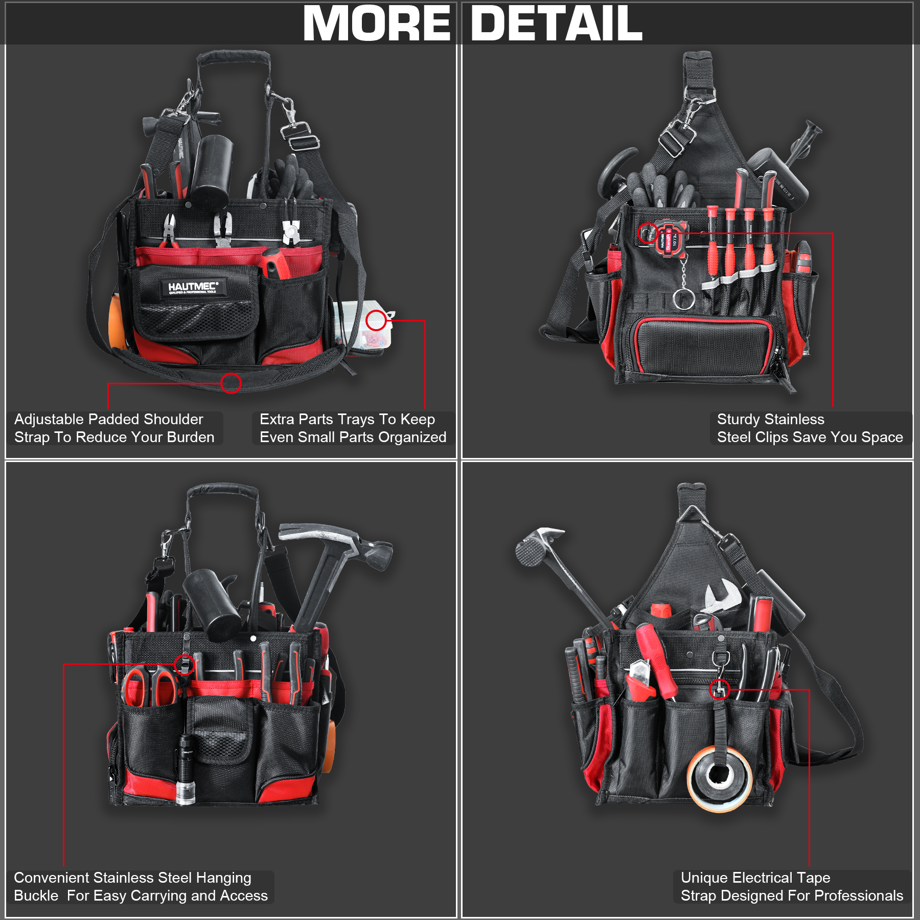 HAUTMEC Electrician Tool Bag with Parts Tray, Heavy-Duty 37-Pocket Open Top Tool Tote, Reinforced Base, Water-Resistant, Adjustable Shoulder Strap – HT0174