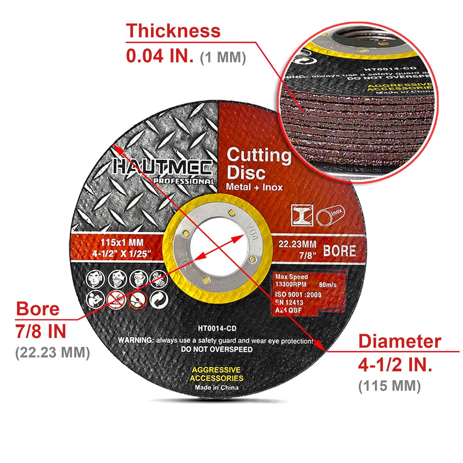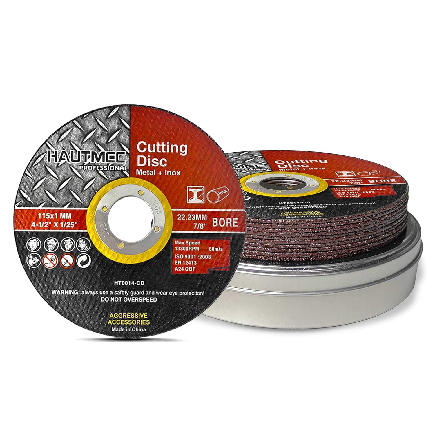 HAUTMEC Expert Grade Cut Off Wheels 4-1/2" x .04" x 7/8", Thin Grinding Disc for Cutting Steel and Ferrous Metals, 10 Pack General Purpose Cut Off Blade for Most Angle Grinder HT0014-CD