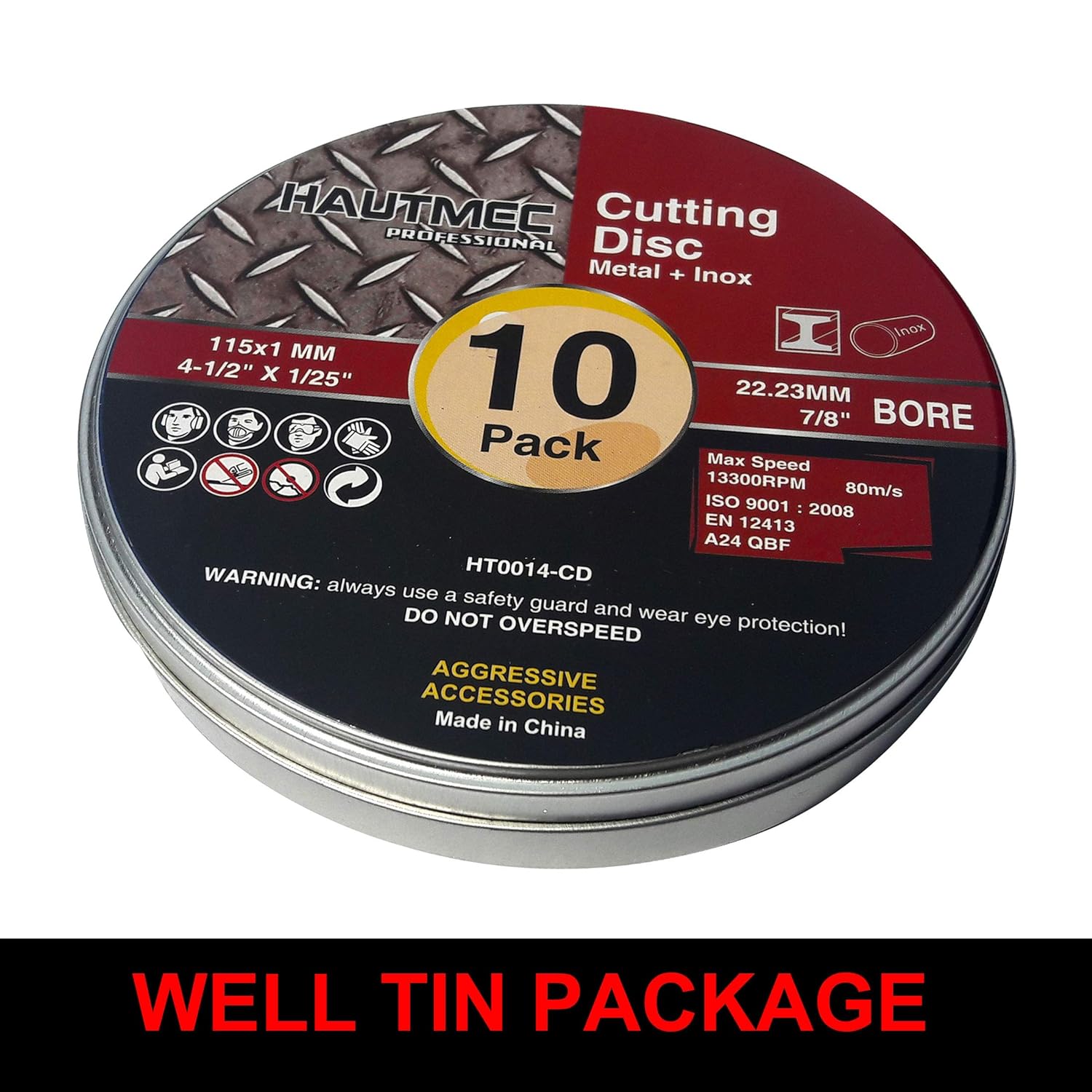 - Come with 10 pcs cut off blades in tin box, ideal for cutting steel, stainless steel, tool steel, plastic, iron, and other ferrous metals